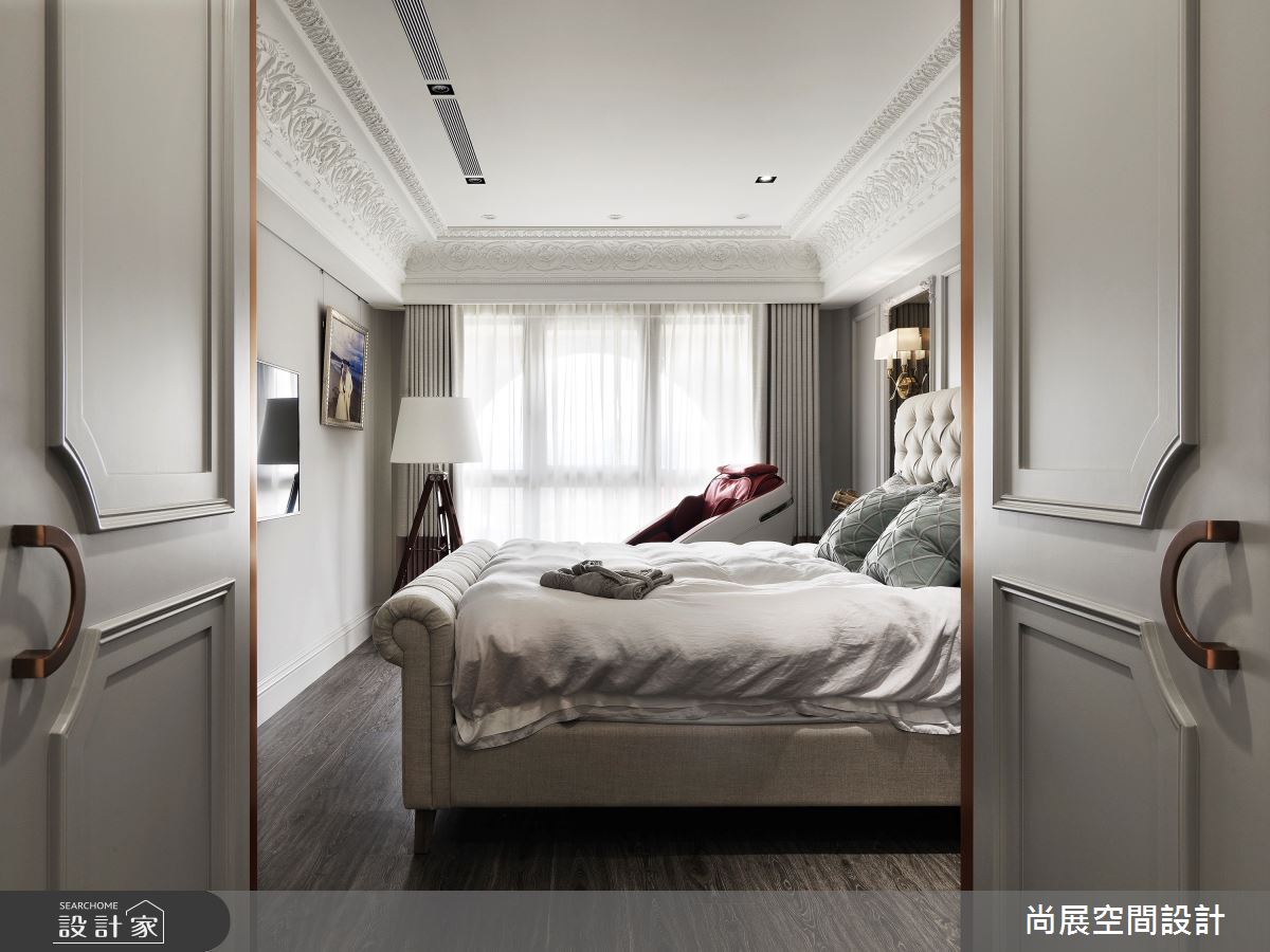 由尚展設計精心規劃的110坪四房住宅空間,家庭成員一共有2位大人、3位小孩。因應屋主需求,設計師運用新古典作為主軸,搭配油漆、乳膠漆、壁紙、鍍鈦金屬、烤漆、大理石、磁磚、石材、繃布,打造全家人的夢想家居。