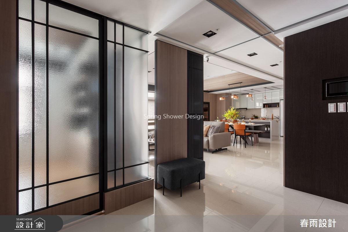 春雨設計以超耐磨木地板、木作貼皮、長虹玻璃、系統櫃的搭配應用,呈現現代風居家氛圍,將此間54.3坪、四房、單層、新成屋(5年以下)打造成舒適愜意的家庭空間,完成2位大人、2位小孩全家人的夢想之居。