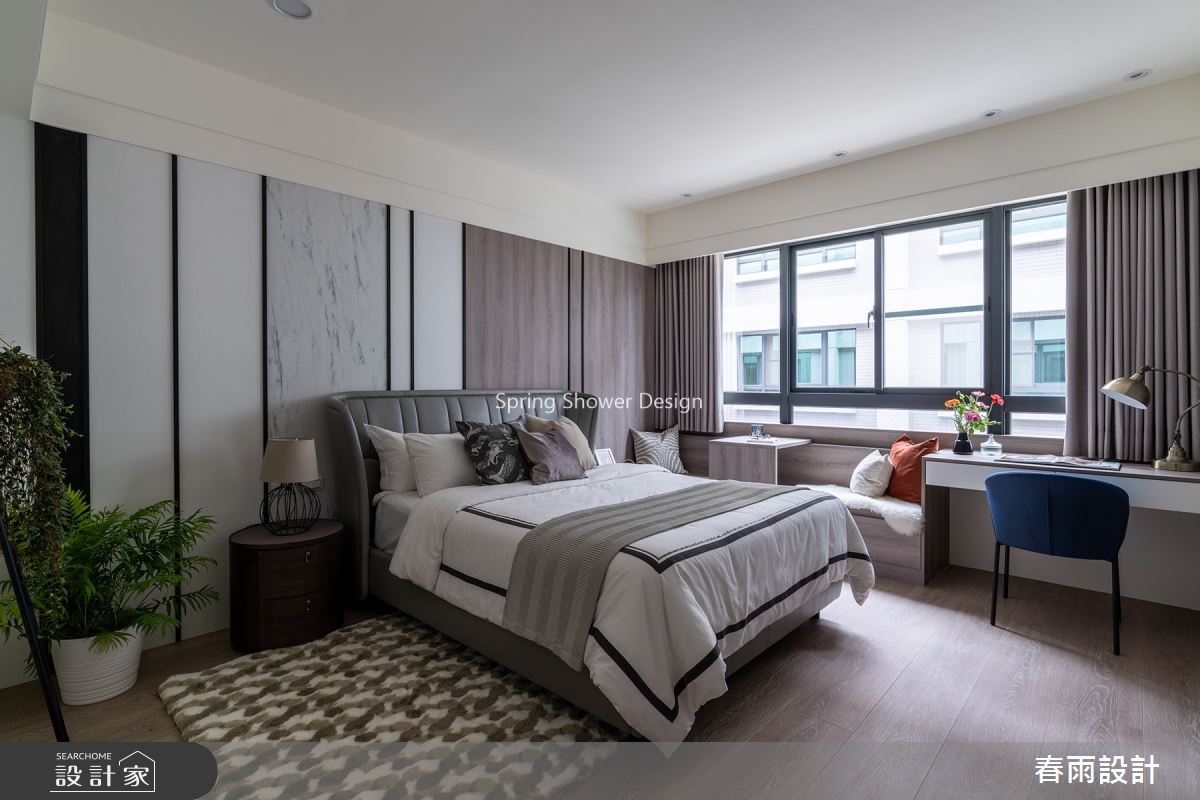 本案為春雨設計的51坪現代風新成屋(5年以下)設計作品,格局為單層四房的居住空間。居住成員包含2位大人、2位小孩。全室建材的搭配,應用石英磚/拋光石英磚、鐵件、系統板材、大理石、美耐板、木作,展現溫馨的居家氛圍。