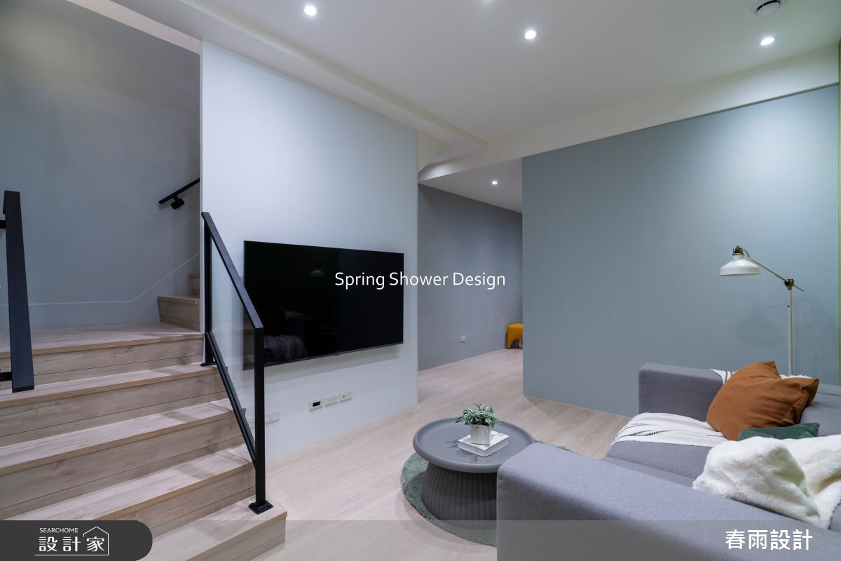 春雨設計以木作、玻璃磚、長虹玻璃、超耐磨木地板、木紋磚、系統櫃、鐵件的搭配應用,呈現現代風居家氛圍,將此間61.2坪、三房、透天別墅、老屋(16~30年)打造成舒適愜意的家庭空間,完成2位大人、2位小孩全家人的夢想之居。