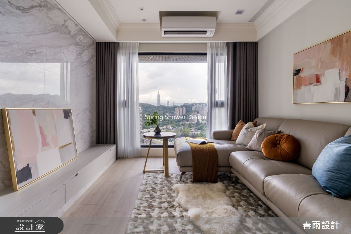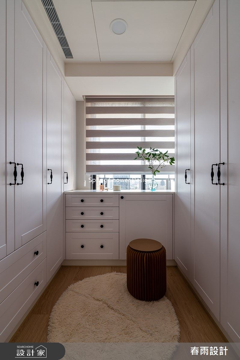 來自春雨設計的32.9坪美式風住宅案,屋主一家人共有2位大人,是一間單層新成屋(5年以下)的兩房格局,設計師藉由建材以大理石、木作、油漆、百葉窗的搭配應用,實現一家人的理想生活。