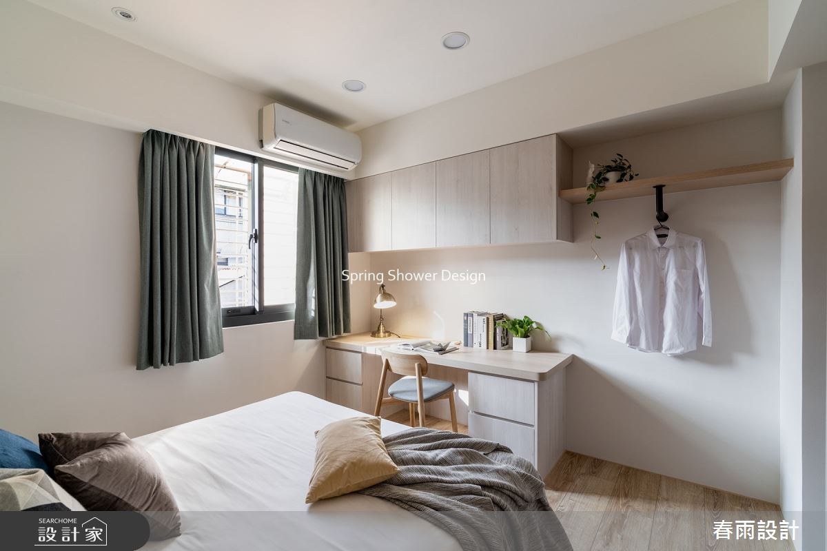 本案為春雨設計的27坪現代風新成屋(5年以下)設計作品,格局為單層三房的居住空間。居住成員包含2位大人。全室建材的搭配,應用F1角材、系統櫃、馬來漆、六角花磚、強化玻璃,展現溫馨的居家氛圍。