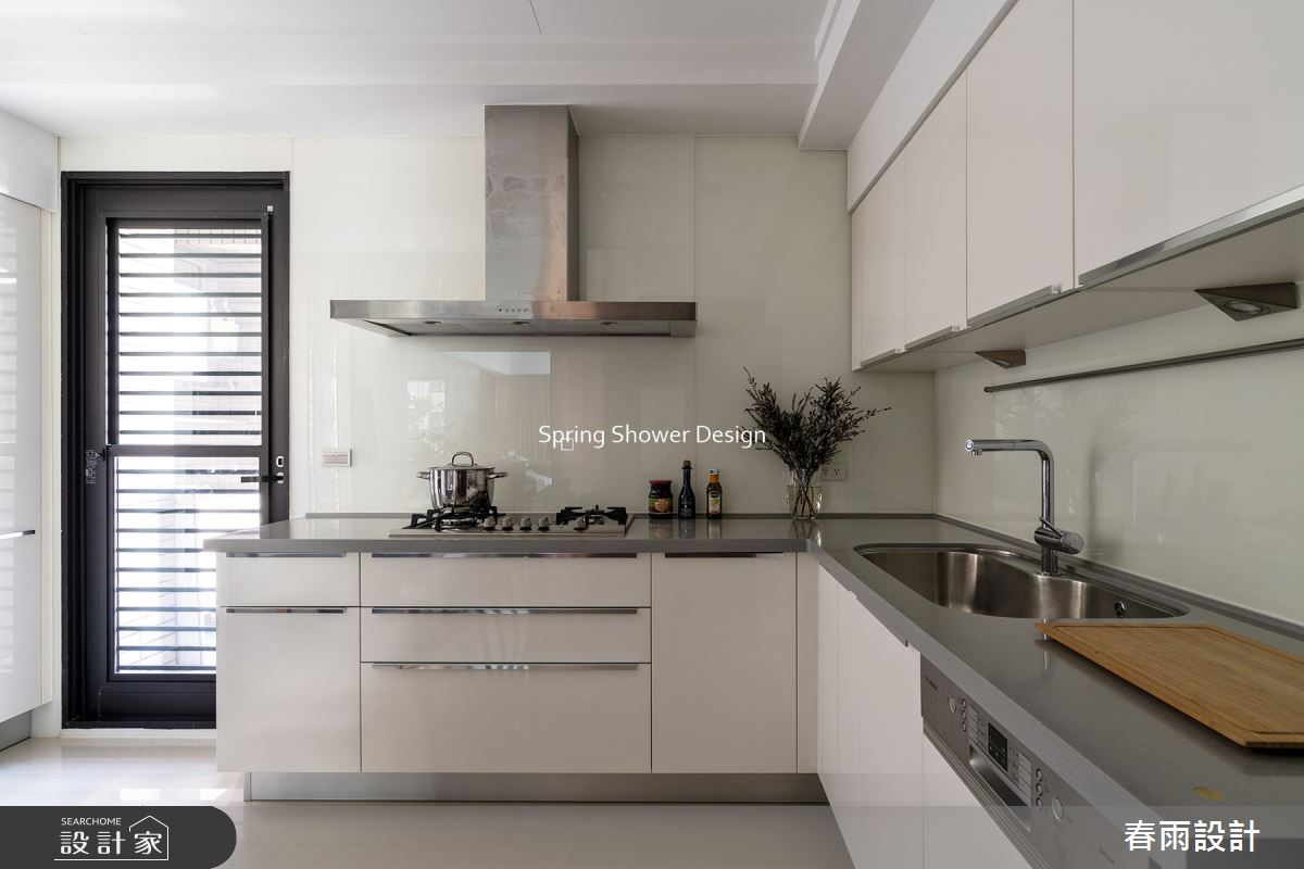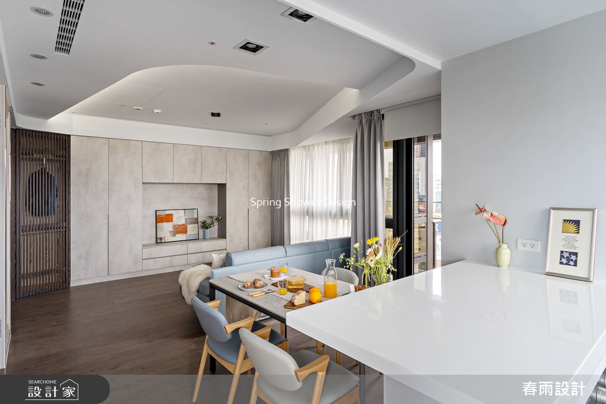 來自春雨設計的32坪現代風住宅案,屋主一家人共有2位大人、2位小孩,是一間單層新成屋(5年以下)的四房格局,設計師藉由建材以壁紙、超耐磨木地板、鐵件、磁磚、烤漆玻璃、長虹玻璃、系統櫃、五金的搭配應用,實現一家人的理想生活。
