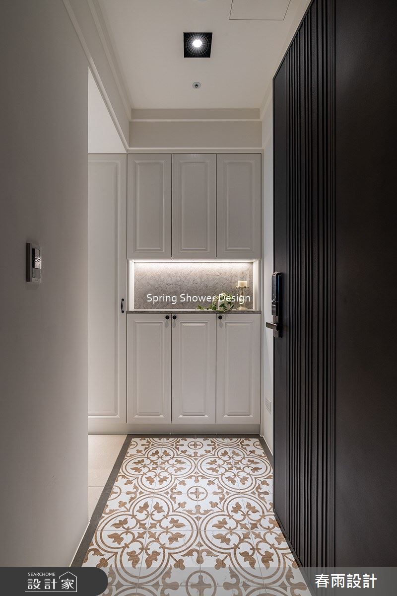 由春雨設計精心規劃的13.2坪一房住宅空間,家庭成員一共有2位大人。因應屋主需求,設計師運用現代風作為主軸,搭配花磚、超耐磨木地板、烤漆、木作、馬來漆、系統櫃、玻璃、金屬、燈飾,打造全家人的夢想家居。