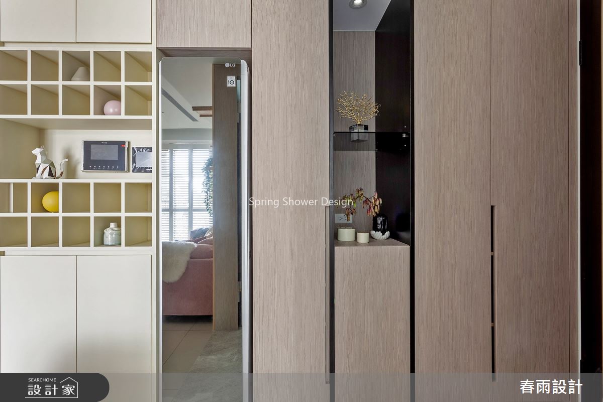 由春雨設計精心規劃的30坪兩房住宅空間,家庭成員一共有1位大人。因應屋主需求,設計師運用新古典作為主軸,搭配木作、系統櫃、珪藻土、花磚、超耐磨木地板,打造全家人的夢想家居。