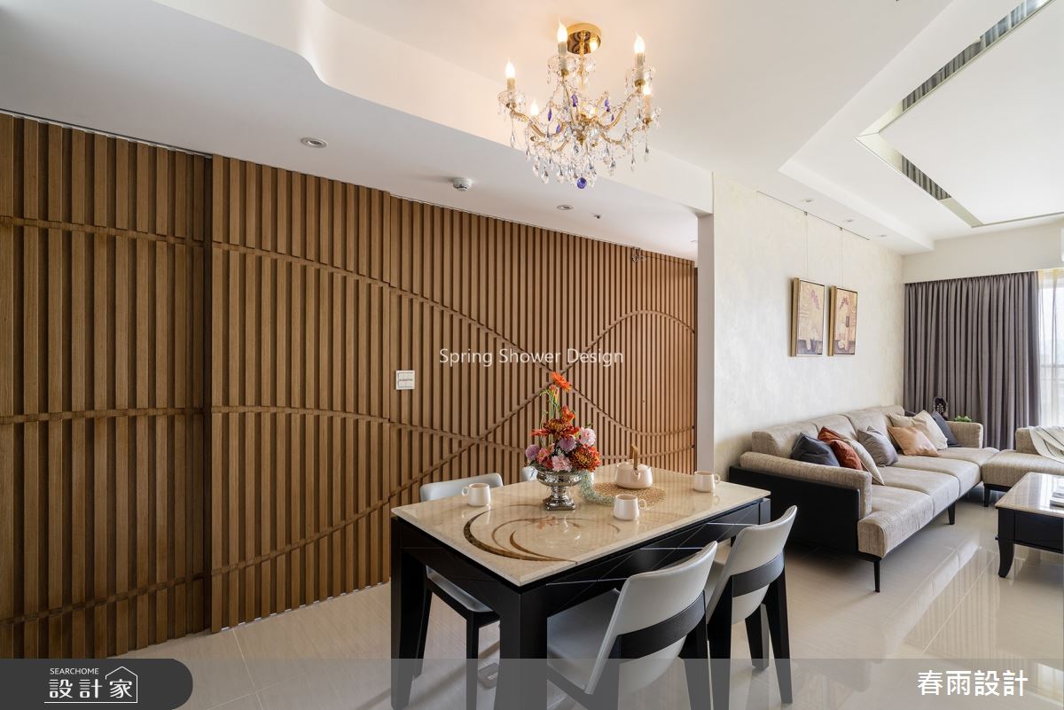 由春雨設計精心規劃的38坪三房住宅空間,家庭成員一共有3位大人。因應屋主需求,設計師運用現代風作為主軸,搭配超耐磨木地板、大理石、陶粒牆、清玻璃、銀霞玻璃、木作、系統櫃、LED燈條、鋁條燈,打造全家人的夢想家居。