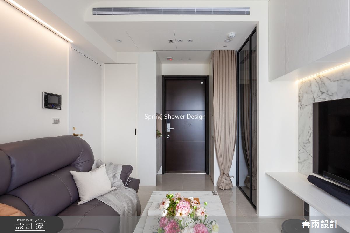 本案為春雨設計的14.9坪現代風新成屋(5年以下)設計作品,格局為單層兩房的居住空間。居住成員包含1位長輩。全室建材的搭配,應用超耐磨木地板、鐵件、系統櫃、木作、清玻璃、長虹玻璃、拉門,展現溫馨的居家氛圍。
