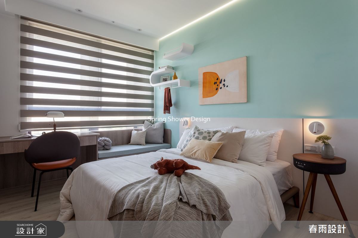 本案為春雨設計的26.9坪北歐風新成屋(5年以下)設計作品,格局為單層三房的居住空間。居住成員包含1位大人、2位小孩。全室建材的搭配,應用壁紙、超耐磨木地板、系統板材、大理石、珪藻土、木作、玻璃,展現溫馨的居家氛圍。