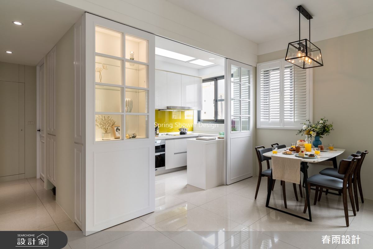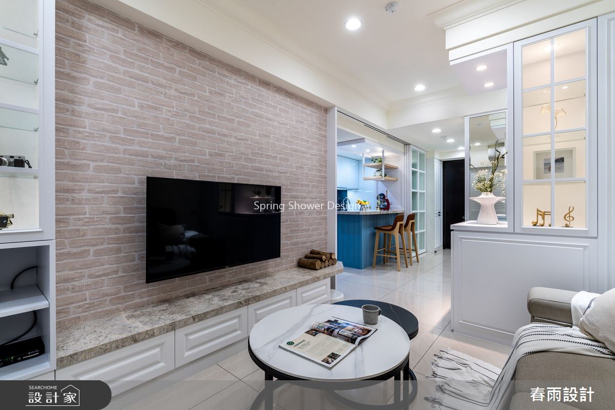由春雨設計精心規劃的18坪兩房住宅空間,家庭成員一共有2位大人、1位小孩。因應屋主需求,設計師運用美式風作為主軸,搭配壁紙、鐵件、大理石、木作、系統櫃、玻璃,打造全家人的夢想家居。