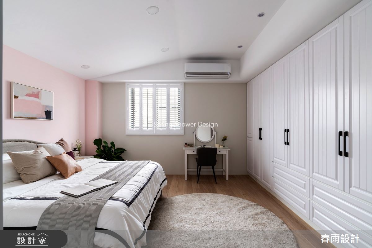 由春雨設計精心規劃的32坪三房住宅空間,家庭成員一共有2位大人、2位小孩。因應屋主需求,設計師運用美式風作為主軸,搭配壁紙、超耐磨木地板、木作、系統櫃、鐵道磚,打造全家人的夢想家居。