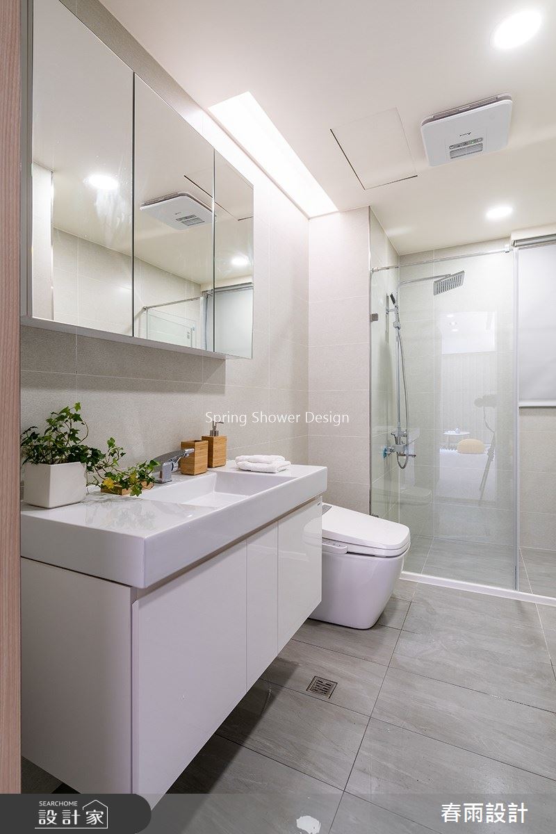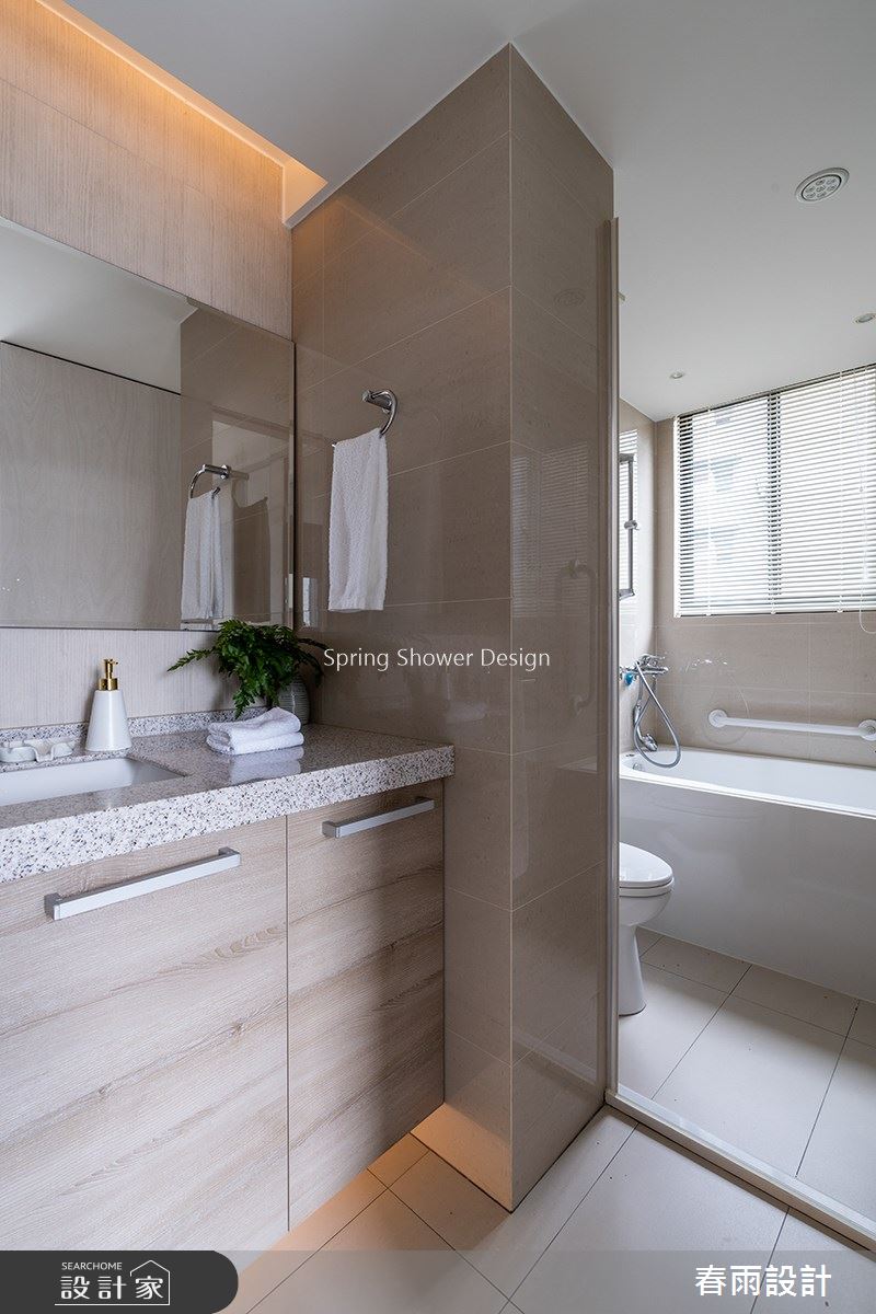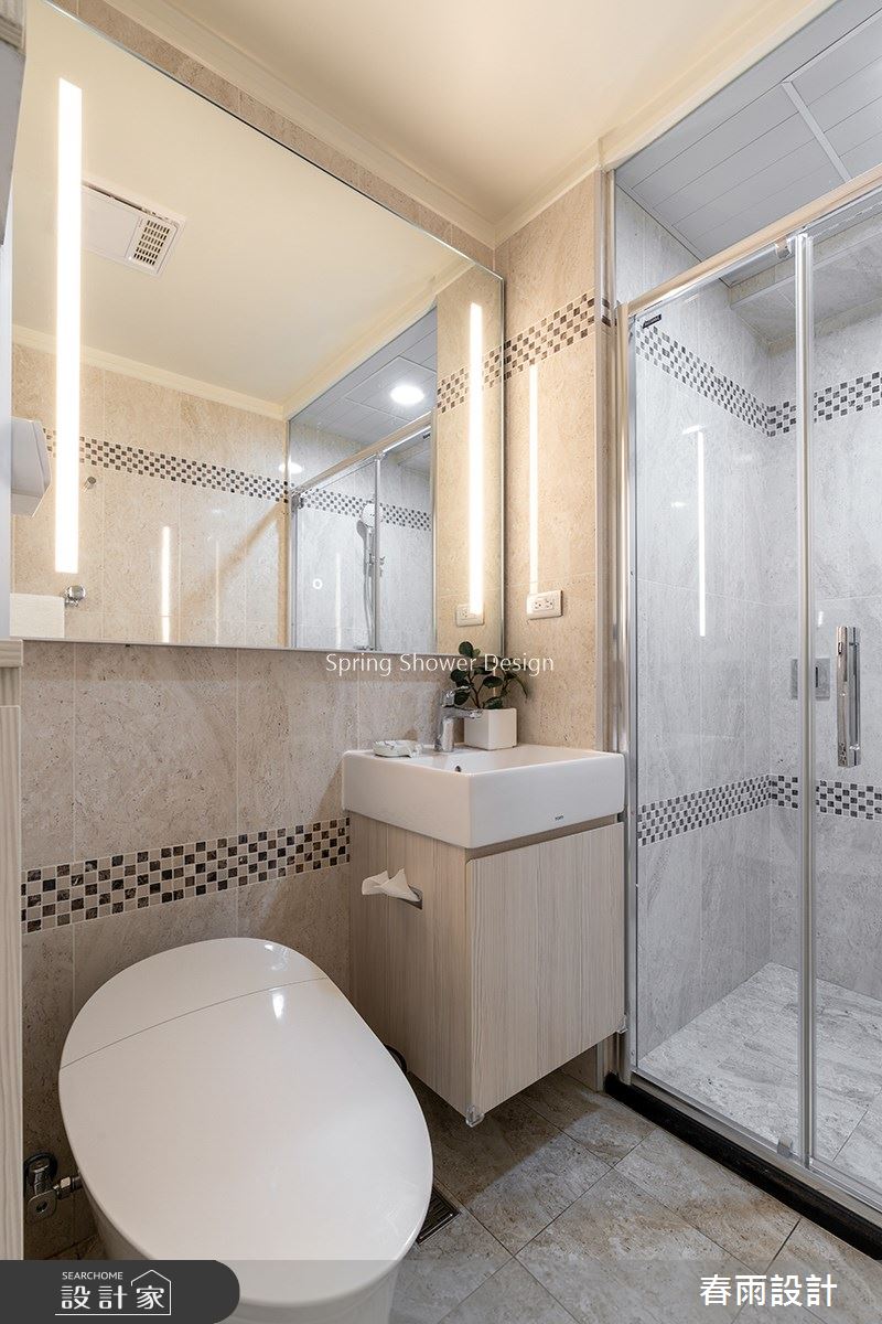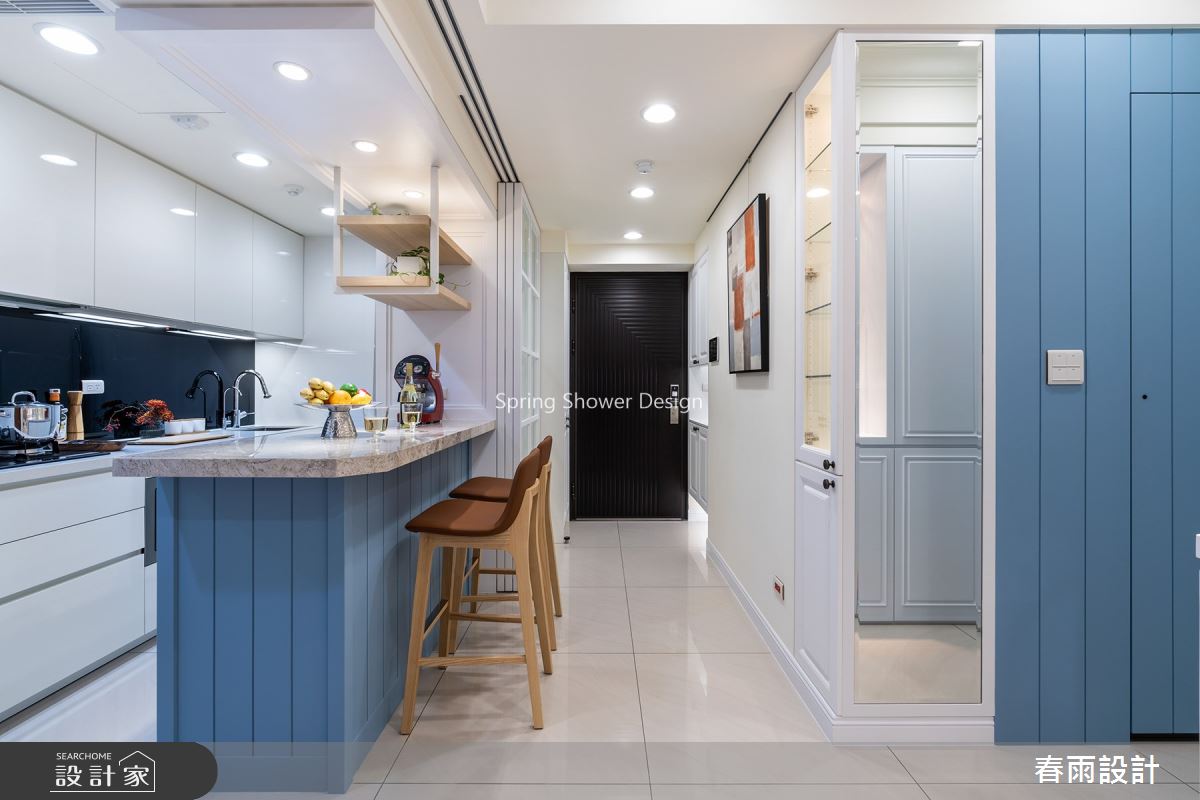 來自春雨設計的28坪美式風住宅案,屋主一家人共有1位大人、2位長輩,是一間單層老屋(16~30年)的兩房格局,設計師藉由建材以大理石、磁磚、木作、系統櫃、鏡面的搭配應用,實現一家人的理想生活。