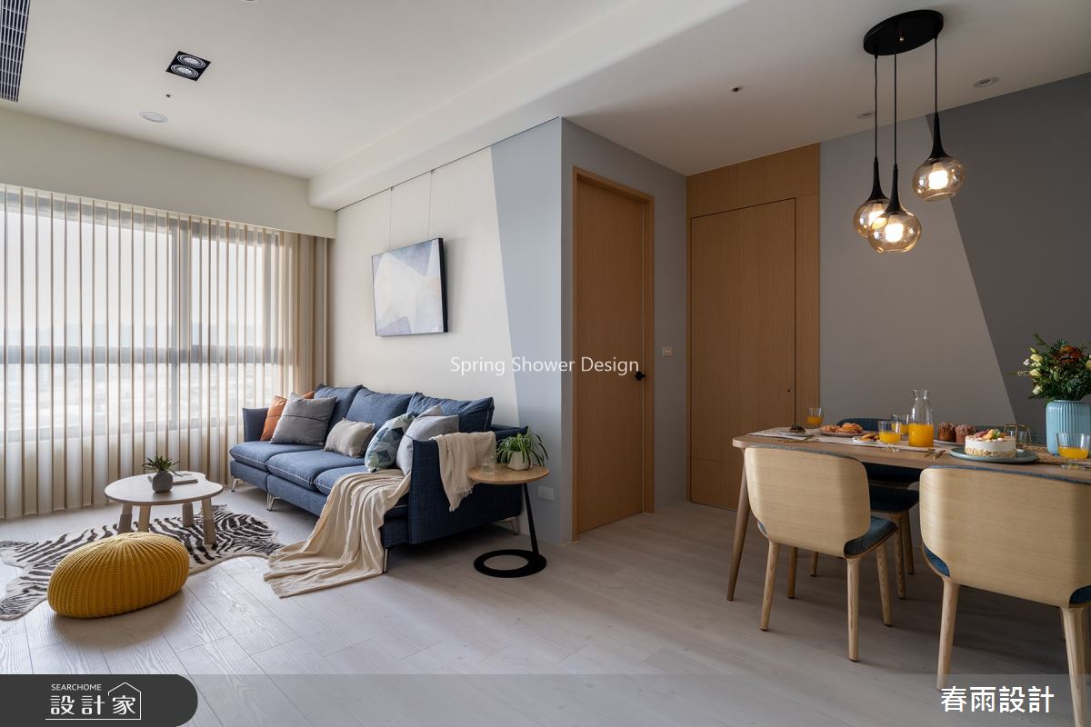由春雨設計精心規劃的34坪兩房住宅空間,家庭成員一共有2位大人。因應屋主需求,設計師運用現代風作為主軸,搭配花磚、超耐磨木地板、珪藻土、木作、系統櫃,打造全家人的夢想家居。