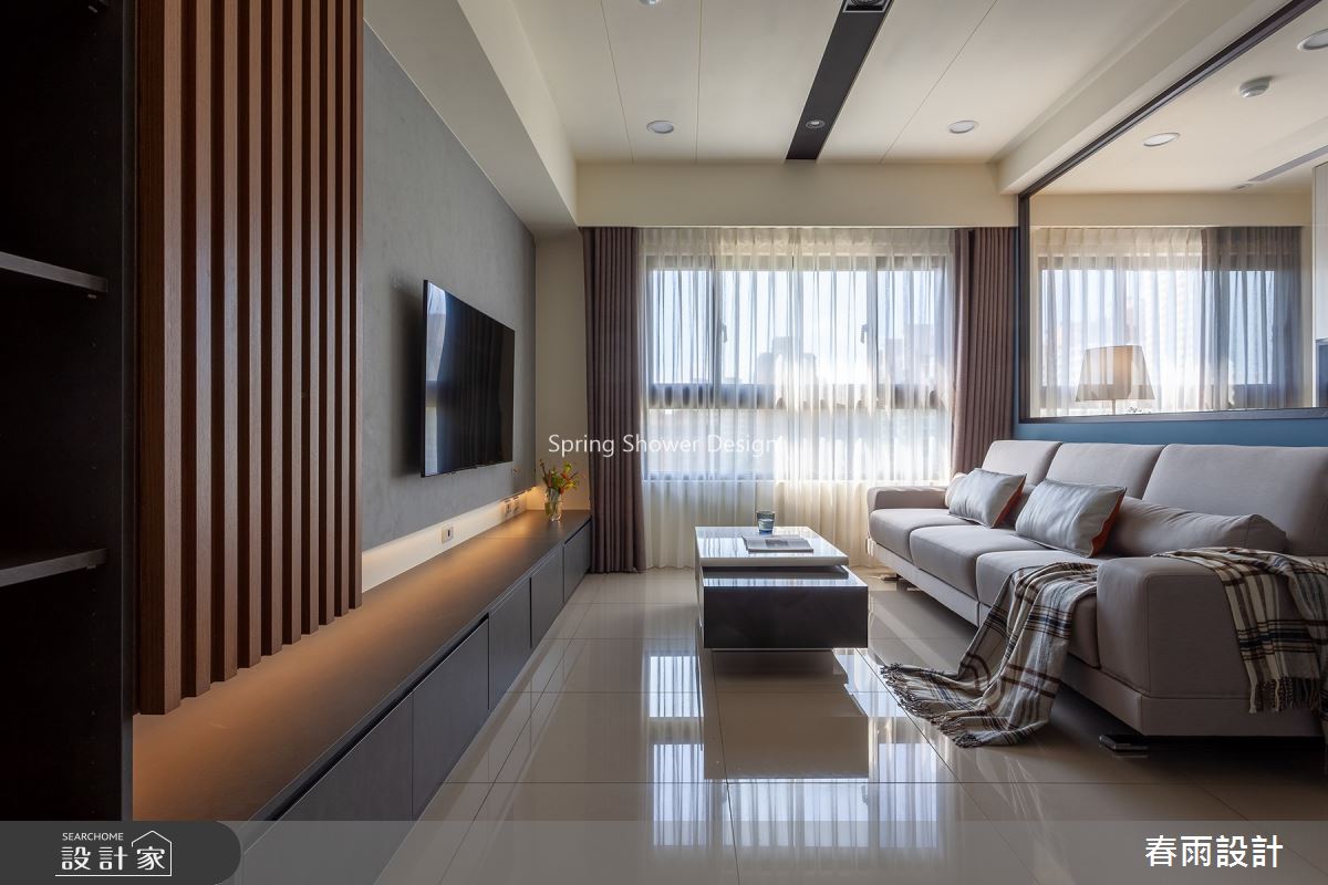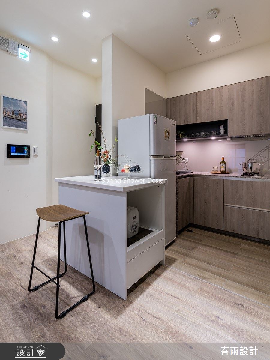 由春雨設計精心規劃的18坪兩房住宅空間,家庭成員一共有2位大人。因應屋主需求,設計師運用現代風作為主軸,搭配海島型木地板、超耐磨木地板、美耐板、木作、系統櫃、玻璃,打造全家人的夢想家居。