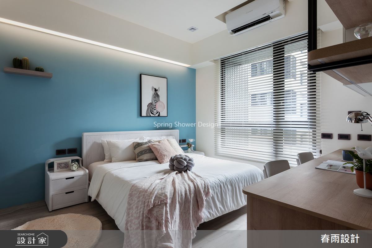 本案為春雨設計的38坪美式風新成屋(5年以下)設計作品,格局為單層三房的居住空間。居住成員包含2位大人、1位長輩。全室建材的搭配,應用壁紙、木作、系統櫃、美耐板、銀霞玻璃,展現溫馨的居家氛圍。