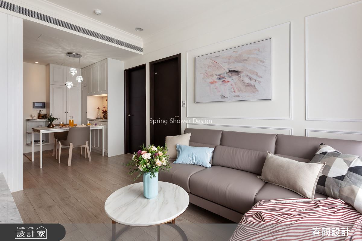 由春雨設計精心規劃的18坪兩房住宅空間,家庭成員一共有2位大人。因應屋主需求,設計師運用美式風作為主軸,搭配大理石、木工、系統櫃、銀霞玻璃、超耐磨木地板,打造全家人的夢想家居。