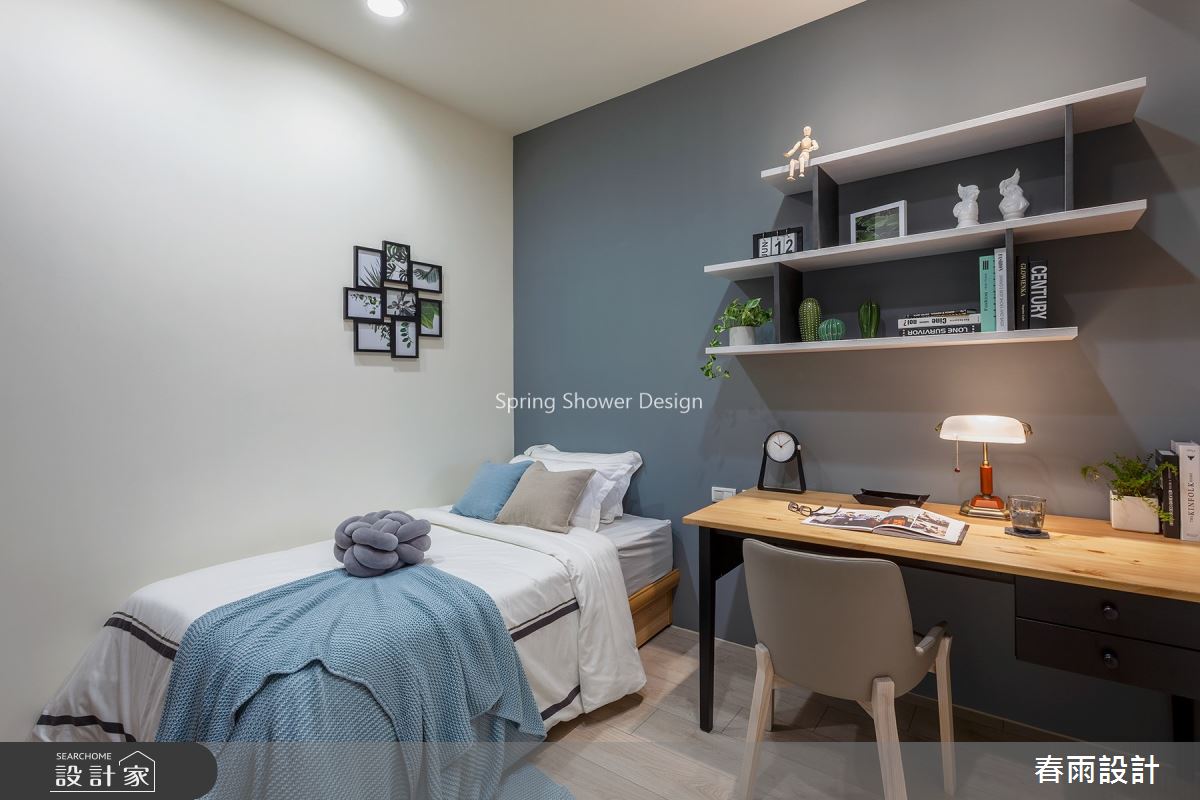 本案為春雨設計的26坪現代風老屋(16~30年)設計作品,格局為單層三房的居住空間。居住成員包含2位大人、1位小孩。全室建材的搭配,應用磁性漆/磁性黑板漆、超耐磨木地板、木紋磚、鐵件、人造石、玻璃、木作,展現溫馨的居家氛圍。