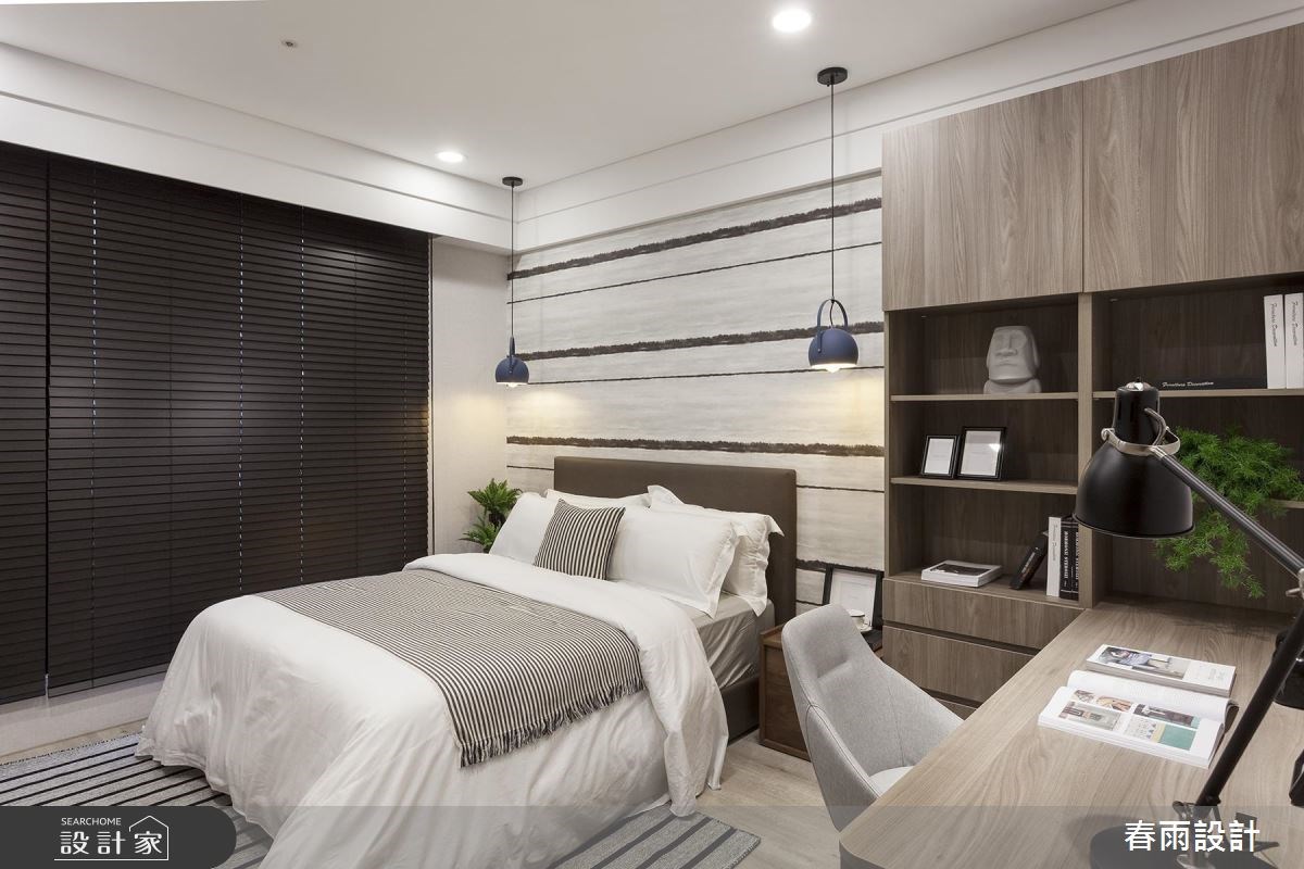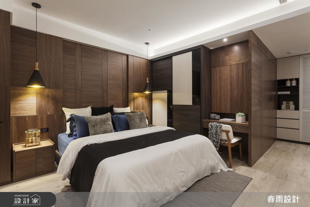 33坪休閒風居家,於玄關打造鞋櫃延伸至電視牆,將展示及收納機能發揮得淋漓盡致,同時設計屏風阻擋入門視線,搭配天花板的木皮與燈光,引導視覺動線;客廳電視牆以馬來漆鋪敘,並在上各配置層板及抽屜櫃,兼具美感與功能,並與后豐書房呈現開放式規劃,享有空間寬闊感,促成使用者的自在互動,並特意在書房設置層板櫃並加上玻璃滑門,順勢構成公領域的美麗端景;主臥房以淺灰色為主,在天花加入圓弧導角,修飾樑體的壓迫感,地坪則搭配木地板,營造溫暖放鬆的氛圍。
