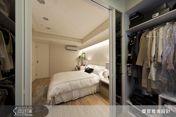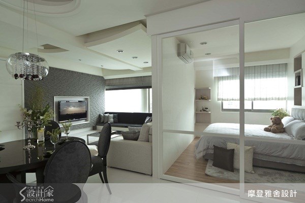 當空間的基礎規劃及硬體設備都到位後,摩登雅舍會讓屋主自己參與軟體配件的採購計畫,在專業設計師的陪同下,帶領屋主採購沙發、床組等大型家具外,連同燈飾、畫框、窗簾及地毯等等配件,讓屋主為這個空間一點一滴地添入自己的喜好及想法,於是這個家不再是單純的居住空間,更充滿了獨特的品味;設計師首先拆除一間房後,引光入室,並加入玻璃隔間,讓採光可自由穿梭,打造寬敞視感;並於主臥在主臥設計拉門,將寢區、書房區隔,保有開闊視野且不失獨立性;並注入實用的收納機能,依照屋主的置物習慣,在玄關規劃了鞋櫃、儲藏櫃,客廳則有電視櫃、書櫃等,臥房也少不了衣櫃,讓居家物品分區收納、皆有所歸;且沿用屋主原有的餐桌椅,將添購家具的錢省下來,分配到木作工程上,讓整體空間更有一致性,也提升了居宅的品味與質感。