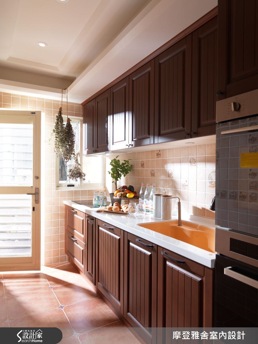 由摩登雅舍室內設計精心規劃的58坪四房住宅空間,家庭成員一共有2位大人、3位小孩。因應屋主需求,設計師運用鄉村風作為主軸,搭配花磚、壁紙、木作貼皮、大理石、磁磚、木百葉、線板,打造全家人的夢想家居。