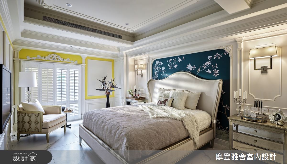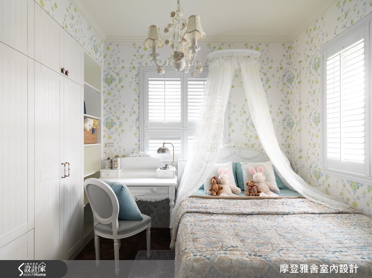 80 坪大宅透過老屋翻新,將屋況予以重整,並以新古典風格作為基調,運用壁紙、進口家具、鏡面等妝點,並取自歌劇《杜蘭朵公主》做為靈感發想,將居家化成華麗的洛可可風場景,躍身一變為現代版的凡爾賽宮,快跟著小編一起來看看吧! 玄關區域,規劃鞋間儲藏室,搭配訂製孔雀壁紙鋪敘,提升入口段落的優雅感;公領域內,則保留場域高度,藉著手繪的精緻雕花修飾,體現大器而浪漫的宮廷風格,且加入訂製的東方感絲綢壁紙,帶入絢麗的孔雀、花鳥、水果圖騰等,描繪出如同皇家成員般的高檔格調;餐廚區,運用圓弧、線板修飾格局,延展屋高優勢,並於廚房揮灑大面積粉紅色,結合壁磚、地磚裝飾,貼近女主人心目中的夢幻氛圍;主臥室內,在床頭妝點土耳其藍花鳥壁紙,並搭佐些許黃色穿插,以極佳的色彩比例與細節修飾,展現房間的獨到品味! 小編的最愛 女孩房,在床頭背牆加入親子鸚鵡圖騰,以鮮明的色調、立體的構圖彰顯視覺主題,勾勒著關於家的動人故事!(裝修預算:500萬以上)