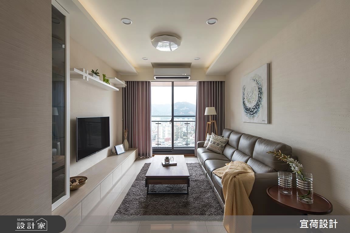 一家四口住進 25 坪的休閒風住宅,居家牆面採用珪藻土和日本進口塗料,並規劃豐富的系統櫃,在充足自然光的照射下,呈現溫馨又明亮的室內氣氛。 玄關利用一道噴砂玻璃屏風,避免視線直接穿透到客廳,同時切割了鞋櫃和電視櫃,巧妙形成獨立又連貫的立面風貌。客廳電視牆在上下兩端,藉由白磚語彙創造牆面的紋理變化。沙發、茶几選擇單純的色彩、簡潔的線條,留出空白來接納窗外的遠方山景。 餐廳則配置一大面電器櫃,搭配方便移動的簡約桌椅,讓居家不會因為要滿足機能,而導致空間過於狹窄。主臥以淡綠色裝飾床頭牆,且運用弧狀設計修飾壓樑,營造舒服的休憩環境。次臥將書桌與床頭櫃結合,並於床鋪下方增設收納空間,使居家保持整潔。 小編的最愛 客廳天花板以木紋飾邊,框定格局範圍的同時,也創造了空間的立體度。