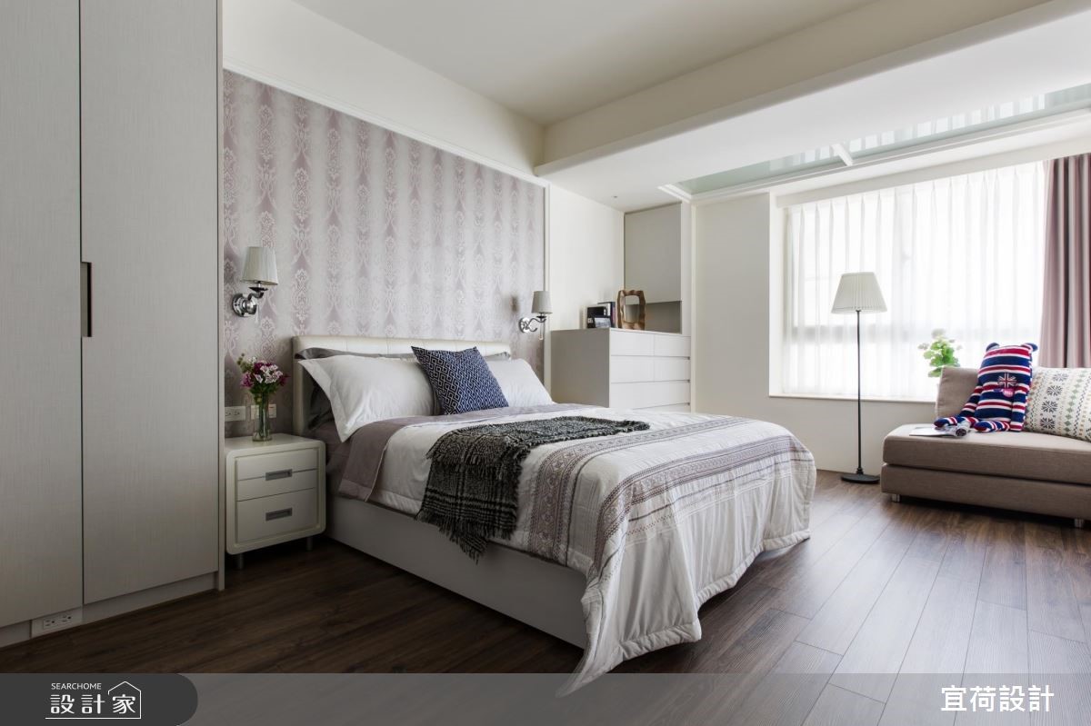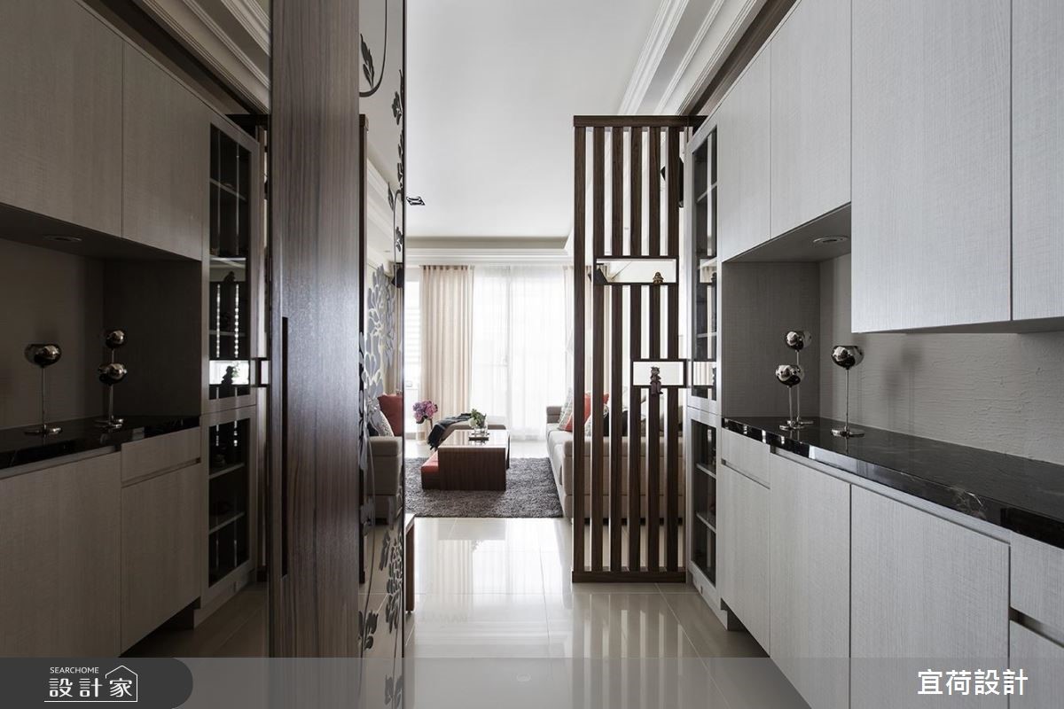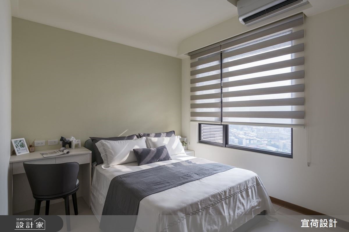 宜荷設計認為,家,就是能讓家人增進互動、共享歡樂時光的場所。因此 38 坪休閒風三代同堂宅,設計師將清新且溫潤的木質注入空間各個角落,系統櫃、傢俱選擇到大面開窗,相互配合以營造出徹底放鬆、充電的生活氛圍。 玄關入口側牆上,設計師以整面明鏡拓寬原本視覺狹長的廊道,作為放鬆感居家舒心開場白,懸櫃下方方便擺放室內托鞋,入口處的上下吊櫃多了一處檯面,可收納物品,增添玄關趣味及使用度;進入客廳後,以溫潤木皮打造的電視牆聚焦視線,一深一淺跳色及對稱語彙,帶出會客空間的簡練大方,並讓木材質延伸至餐廳及玄關格柵,一氣呵成公領域氣氛。沙發背牆淺淺的大地色為珪藻土材料,環保無毒且具調節空氣濕度與氣味,替全家人身心把關。客廳區另一重點為窗邊的多功能室,考量室內寬敞度及明亮感,設計師採半開放式設計,以放大三代六口共同活動範圍,多功能房內規劃了大容量系統書櫃外,也增設一處陽光臥榻,成為悠閒閱讀的角落,還兼具小孩兒童遊戲室,滿足每個世代的生活需求。 小編的最愛 主臥在靠窗角落擺上單人沙發,創造坐臥兩用功效,並根據樑柱高低及位置客製化抽屜式層櫃或及頂系統衣櫃,替臥房爭取大收納機能。次臥格局狹長,將床鋪安排於空間底部,打造臥榻床機能,梳理順暢的生活動線,同時放大可運用收納空間。