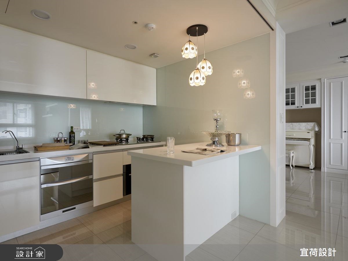 43 坪新古典風住宅,以白色調、造型線板及百葉窗佐古典風格家件串連各領域,巧妙地利用設計將屋主的需求融入空間,部分格局的重整調配,則為生活增加更多收納及輕奢感,實現 1 家 3 口對於家的完美想像。 玄關處規畫海量收納空間,方便收拿屋主的高爾夫球器具;玄關端景以百葉窗的設計化解了直視冷氣室外機的缺點,同時為落塵區保有明亮好採光,線板與石材巧妙拚搭的門拱,不但化解了原有建築大樑的壓迫感,也迎來開闊的公共空間。客、餐廳以復古雕花家具搭佐金邊配飾,營造出古典貴族的生活氛圍,同時利用壁爐式概念打造電視牆,一圓女屋主對於壁爐設計的嚮往。廚房空間以拉門設計,將油煙、氣味阻隔於公領域,廊道另一側則為開放式休憩區,品茶、閱覽或談天,皆能在這伴隨充足日光的場域悠閒享受。主臥以精緻的雕花線板框出房內低調奢華,左右床頭黃光壁燈,為公主王子般的生活挹注暖意;小孩房則以亮色系點綴,讓白色空間跳出活童趣活潑感。 小編的最愛 雕花線板、復古奢華的高雅桌椅、金屬家飾、南瓜造型的燈具及椅凳等,皆可從細節中看出設計師為了實現屋主夢想中的古典貴族生活,仔細用心的規劃。