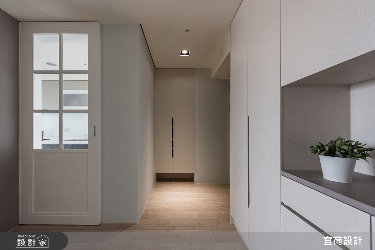 因考量到家有新生兒即將誕生,希望增加全室收納空間,於是設計師將 18 坪老屋予以改建,並在家安置獨立的小區塊,做為個人在家工作空間,搭配日式無印風的美學修飾,快跟著小編一起來看看吧! 因為是老屋翻新,原來的客廳屋況較為特殊,考慮到沙發旁上方有一根大樑,於是順應格局,將公領域區隔成兩區,挪出獨立的工作空間,以隔柵門作界定區隔,帶入輕盈的輕日式風格,而原先客廳窗台的地方則予以加寬,透過吧台桌面的設置,創造明亮美好的閱讀角落,旁邊的畸零空間再多做出置物空間,可用以收納工作資料及書籍! 小編的最愛 原先的臥房擁有一排氣窗,但因窗戶老舊會有隔音、漏水問題,所以設計師將多餘的氣窗封閉,並利用空間增加收納,同時增加隔音效果!