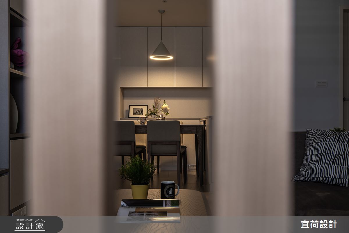 宜荷設計以乳膠漆、六角磚/蜂巢磚、石塑木地板、木地板、木紋磚、系統板材、磁磚、水泥/水泥粉光、賽麗石、軌道燈的搭配應用,呈現日式無印風居家氛圍,將此間28坪、三房、單層、老屋(31~40年)打造成舒適愜意的家庭空間,完成2位大人全家人的夢想之居。