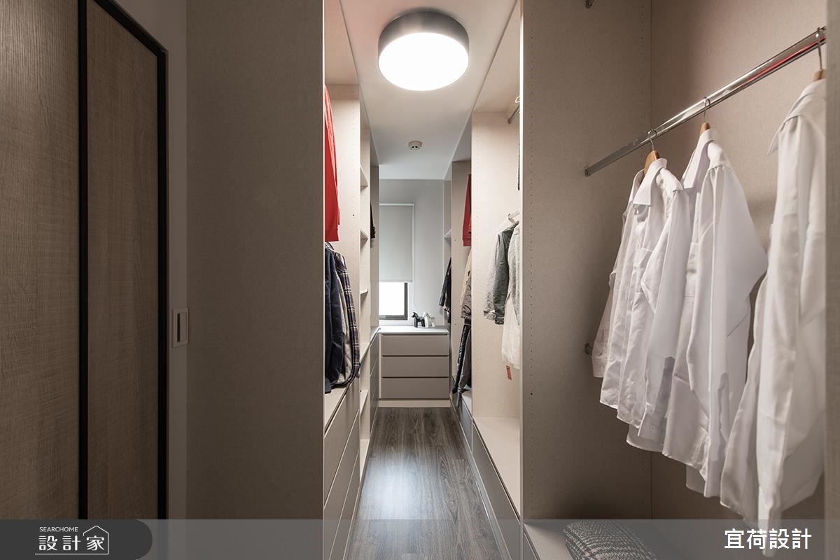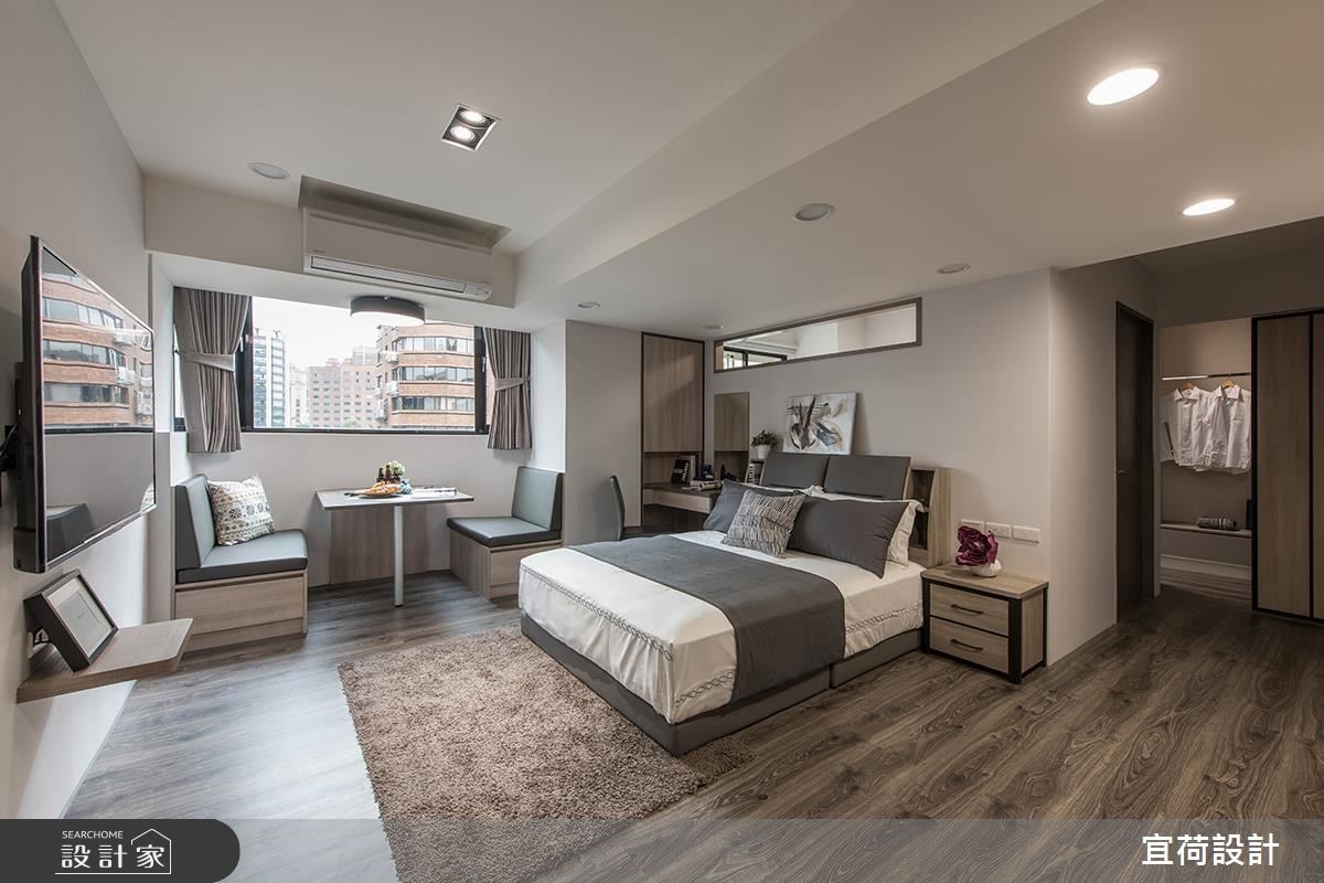 在國外工作多年的屋主夫婦,退休之際選擇回台生活,16坪小空間根據屋主特殊需求減少客廳領域,改以飯店式格局規劃出兩房,且配置了兩台電視,滿足夫妻喜好。究竟這間簡約風老宅還藏了什麼機能,成功收服旅外屋主的心呢?跟著小編繼續看下去! 針對年邁時所設計的住宅空間,屏除多餘的繁複裝飾,以簡約耐看木色鋪陳雋永氣氛。格局設計上,少了客廳,置於空間中心的床鋪區、床頭旁梳妝機能、緊鄰窗邊的用餐閱覽空間結合,形成一個開放式多功能活動地帶,且寬闊的走道動線設計,便利輪椅使用,也讓毛小孩能自由走跳,另外,備有一間小型傭人房、四件式大衛浴設計,處處為屋主考量,以打造出適合安心養老的完備機能。 小編的最愛 僅只 16 坪的小坪數,巧妙利用系統櫃創造大容量收納,從入口及頂收納到獨立更衣室空間,依據使用者高度、適合衣物鞋品的客製化層架設計,完整生活一切所需。