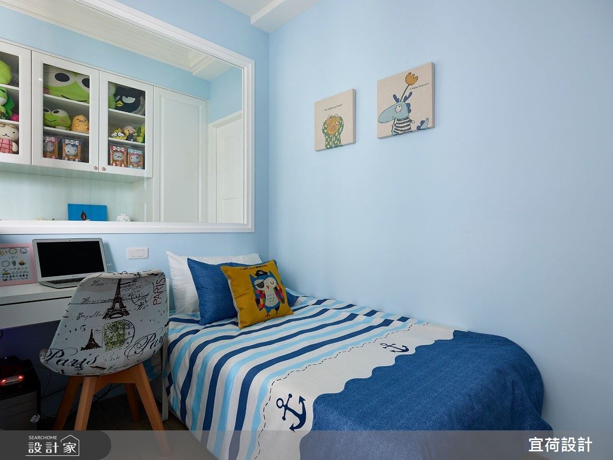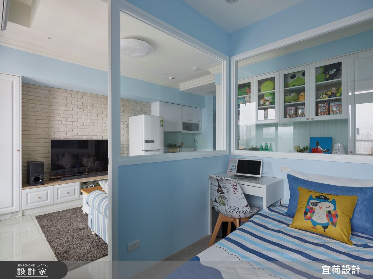 生活太忙碌、工作倦怠了,偶爾也需要喘口氣嗎?10 坪美式鄉村風小宅幫科技業屋主省去放鬆度假的旅費,運用藍白色系打底,搭配純白櫃體、簡練線板、海軍風沙發、透光玻璃隔間,迎來放鬆力十足的夏日海洋氣氛,回家就像去海島國家度假般悠遊自在。 10 坪小宅客廳狹長且採光不佳,因此設計師將玄關櫃及廚房安排於兩側壁面,並與採光充裕的客廳區相鄰安排,呈現開放式一字型動線,使用順手外,也化解無窗地帶光線不足疑慮。沙發背牆採以玻璃半牆隔屏形式並延伸至廊道,讓新增的多功能客房不阻擋光影,並搭佐海洋色系壁面提亮室內空間,同時拉寬公共空間視野尺度。主臥也運用相似的設計手法,以玻璃取代傳統門片,讓臥房領域同時享有衛浴空間的好光線。 小編的最愛 小空間怎麼收納呢?設計師結合樑柱、造型,以客製化的系統收納櫃,替小宅爭取更多儲物位置。如鞋櫃與公共空間收納櫃,以一路延伸至廊道的設計,新增收納空間之於不忘梳理出順暢整齊動線。另外,冰箱也巧妙置放於客廳與廚房之間凹陷處,打造出平整不突兀的空間視覺。