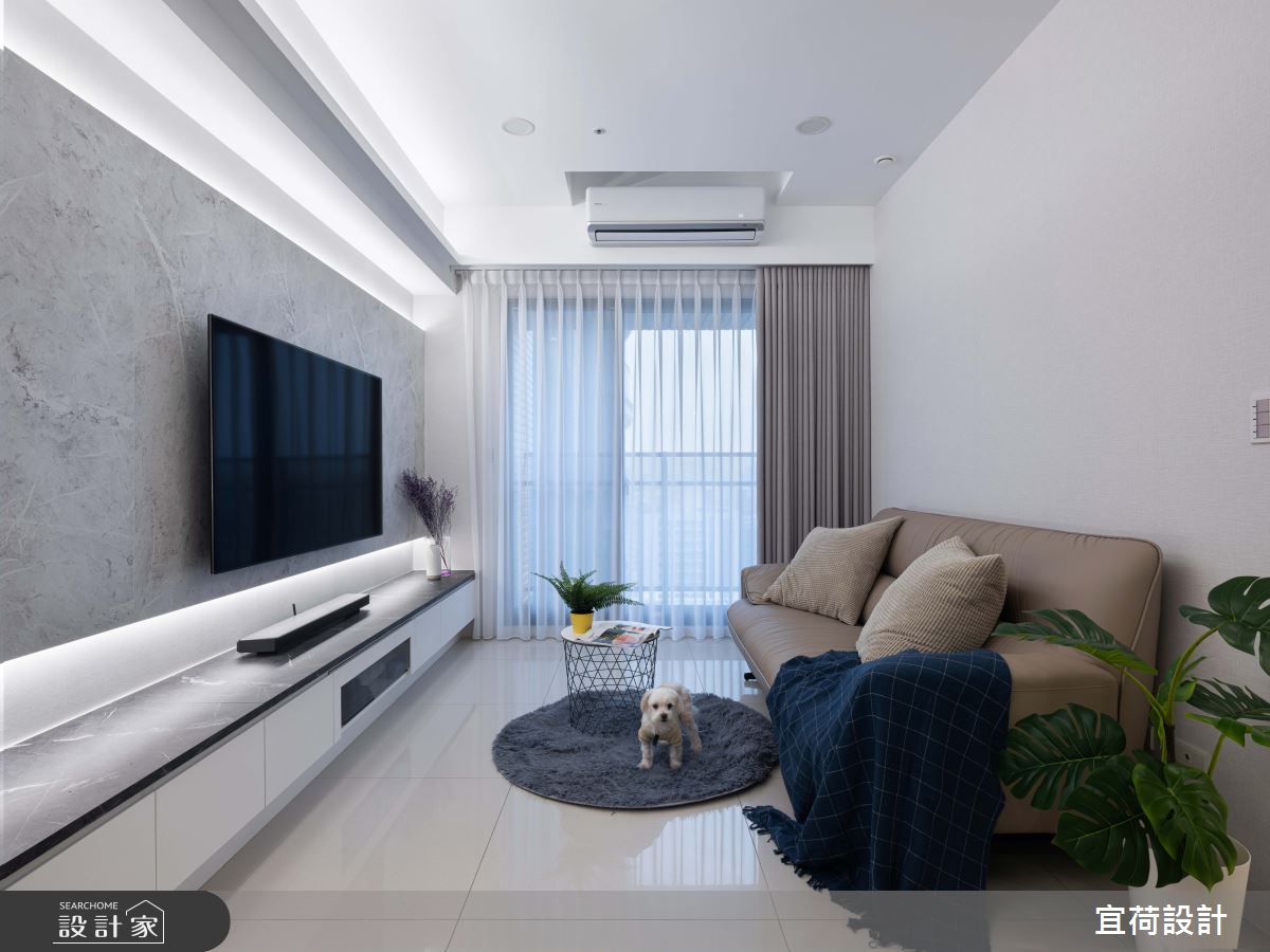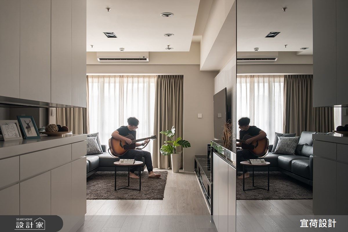 由宜荷設計精心規劃的22坪兩房住宅空間,家庭成員一共有2位大人。因應屋主需求,設計師運用現代風作為主軸,搭配壁紙、石英磚/拋光石英磚、烤玻、木作貼皮、系統板材、人造石,打造全家人的夢想家居。