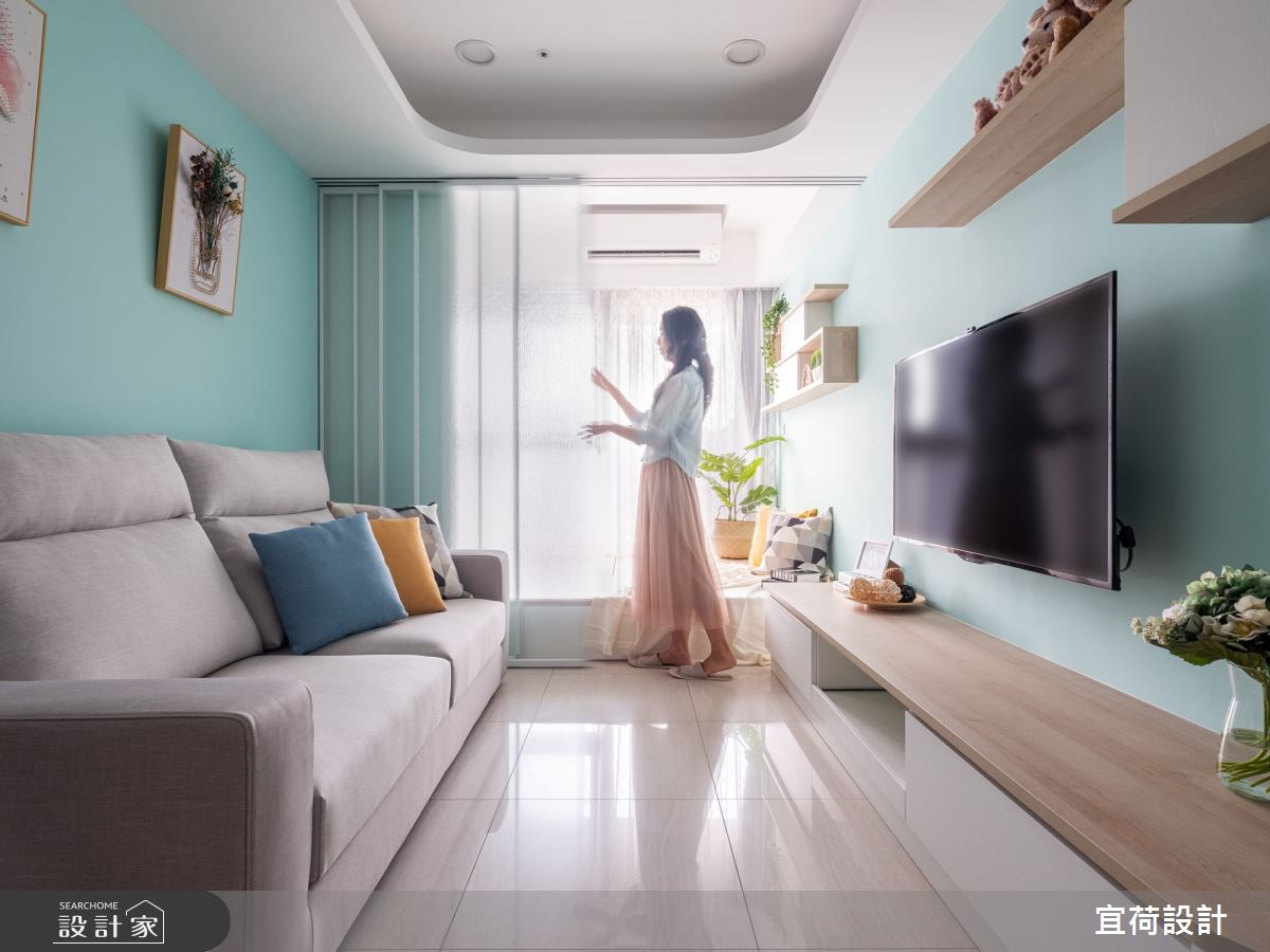 來自宜荷設計的13坪北歐風住宅案,屋主一家人共有1位大人,是一間單層新成屋(5年以下)的兩房格局,設計師藉由建材以人造石材、系統櫃、進口塗料、特殊玻璃、鋁框拉門的搭配應用,實現一家人的理想生活。