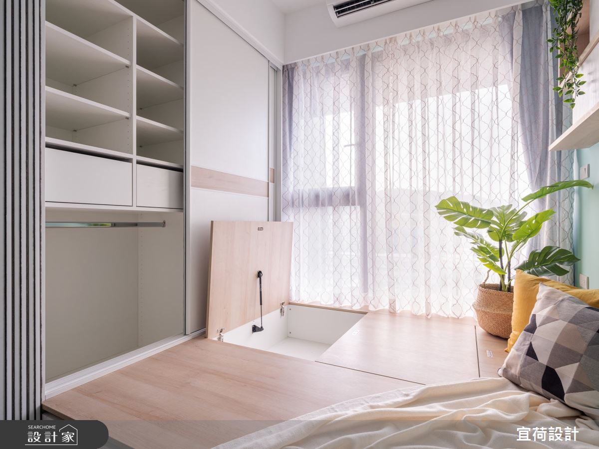 宜荷設計認為,家,就是能讓家人增進互動、共享歡樂時光的場所。因此 38 坪休閒風三代同堂宅,設計師將清新且溫潤的木質注入空間各個角落,系統櫃、傢俱選擇到大面開窗,相互配合以營造出徹底放鬆、充電的生活氛圍。 玄關入口側牆上,設計師以整面明鏡拓寬原本視覺狹長的廊道,作為放鬆感居家舒心開場白,懸櫃下方方便擺放室內托鞋,入口處的上下吊櫃多了一處檯面,可收納物品,增添玄關趣味及使用度;進入客廳後,以溫潤木皮打造的電視牆聚焦視線,一深一淺跳色及對稱語彙,帶出會客空間的簡練大方,並讓木材質延伸至餐廳及玄關格柵,一氣呵成公領域氣氛。沙發背牆淺淺的大地色為珪藻土材料,環保無毒且具調節空氣濕度與氣味,替全家人身心把關。客廳區另一重點為窗邊的多功能室,考量室內寬敞度及明亮感,設計師採半開放式設計,以放大三代六口共同活動範圍,多功能房內規劃了大容量系統書櫃外,也增設一處陽光臥榻,成為悠閒閱讀的角落,還兼具小孩兒童遊戲室,滿足每個世代的生活需求。 小編的最愛 主臥在靠窗角落擺上單人沙發,創造坐臥兩用功效,並根據樑柱高低及位置客製化抽屜式層櫃或及頂系統衣櫃,替臥房爭取大收納機能。次臥格局狹長,將床鋪安排於空間底部,打造臥榻床機能,梳理順暢的生活動線,同時放大可運用收納空間。
