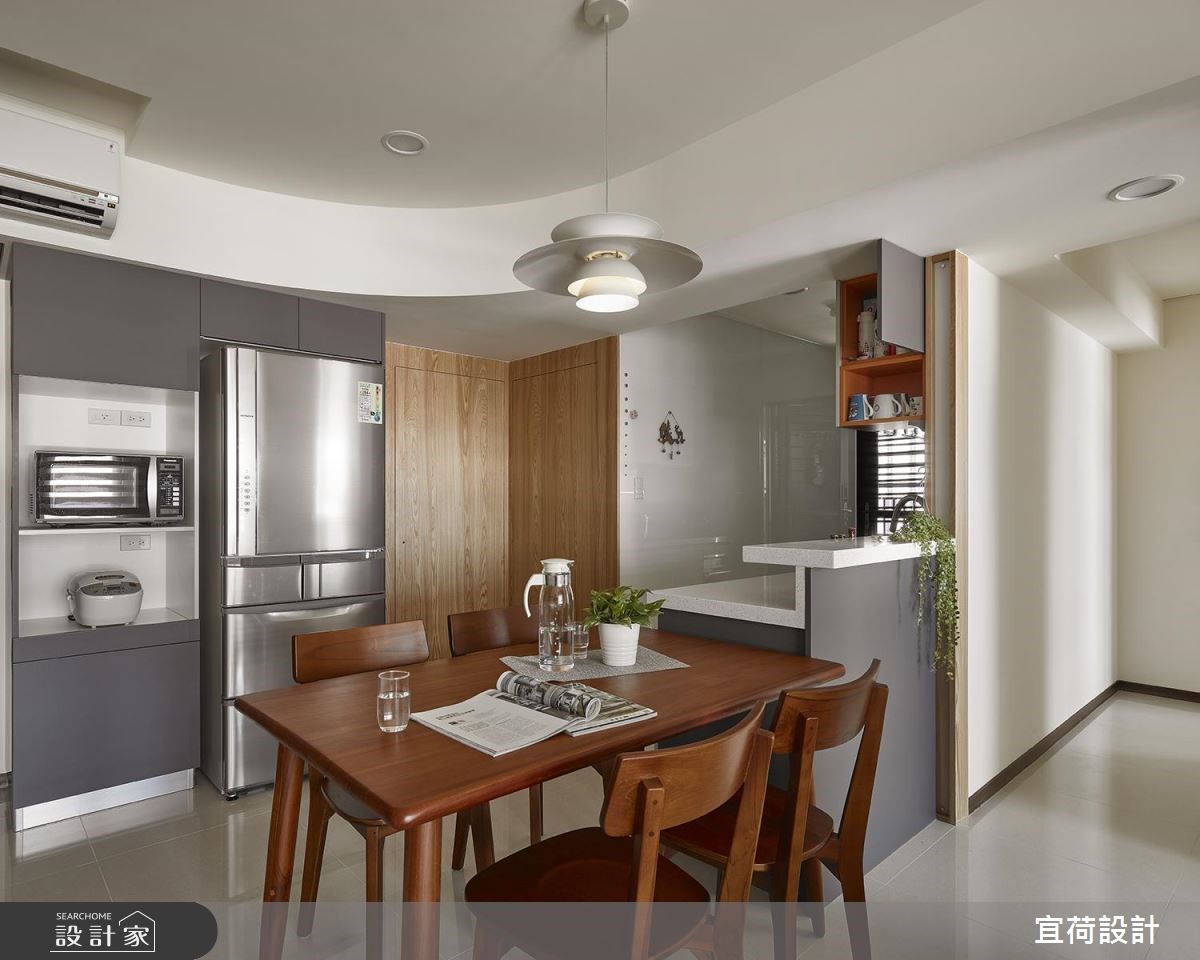 來自宜荷設計的36坪現代風住宅案,屋主一家人共有2位大人、2位小孩,是一間單層新成屋(5年以下)的三房格局,設計師藉由建材以乳膠漆、壁紙、超耐磨木地板、灰鏡、木作貼皮、烤漆、鋼刷木皮、系統板材、大理石、百葉窗、陶板桌面、鐵件拉門的搭配應用,實現一家人的理想生活。