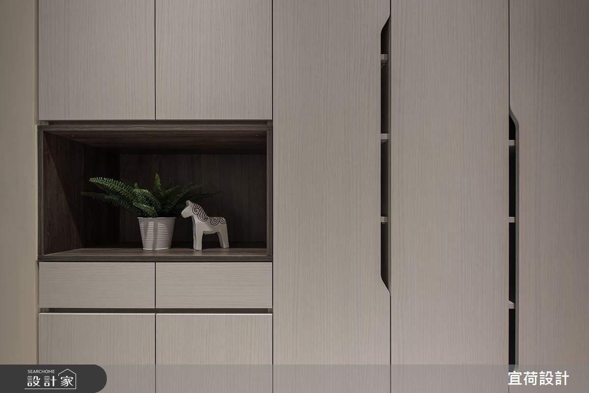 好介意風水問題,但預設屋格局配置不佳,如何靠微調巧妙化解?針對 32 坪現代風住宅屋主在意的隱私性與風水疑慮,設計師悄悄位移門片位置,再增添雙面收納櫃,不僅解決格局缺陷,同時新增更便利的生活機能。 原格局的開放式設計,讓用餐區較沒有隱私,於是改變原廚房入口位置新增電器收納櫃,賦予玄關底端屏風機能;步入室內前運用的45度客製化轉角收納,順暢動線帶來開闊感受,還成為收藏品的最佳展示舞台。杏色調的客、餐廳,運用系統櫃的多元性替電視牆、餐廳區規劃大容量隱藏收納,簡約寬敞視覺中暗藏豐富儲物規劃。獨立廚房入口更改位置後,也將一字型廚具設備變更為擁有備餐區的 L 型廚房,打造更適合屋主需求的設計。 小編的最愛 根據家庭成員生活作息打造出雙洗手台衛浴設計,浴室內外皆能洗漱,具有五星飯店的生活感外,起床不用搶洗臉刷牙區,同時便於用餐完洗手清潔。