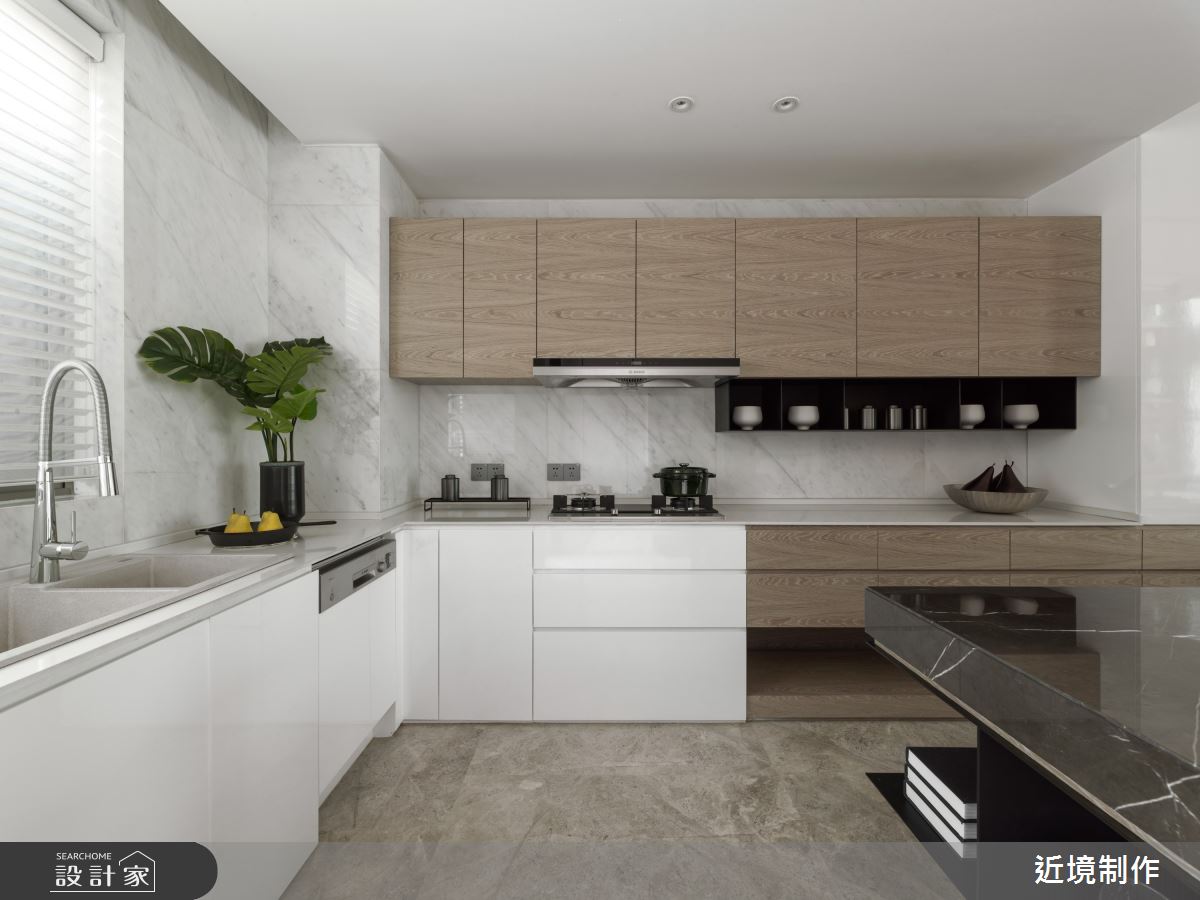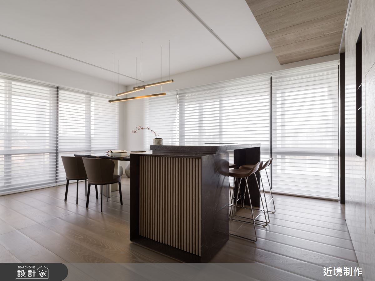 來自近境制作的41坪現代風住宅案,是一間預售屋的三房格局,設計師藉由建材以木皮、石材、不鏽鋼、特殊漆的搭配應用,實現一家人的理想生活。