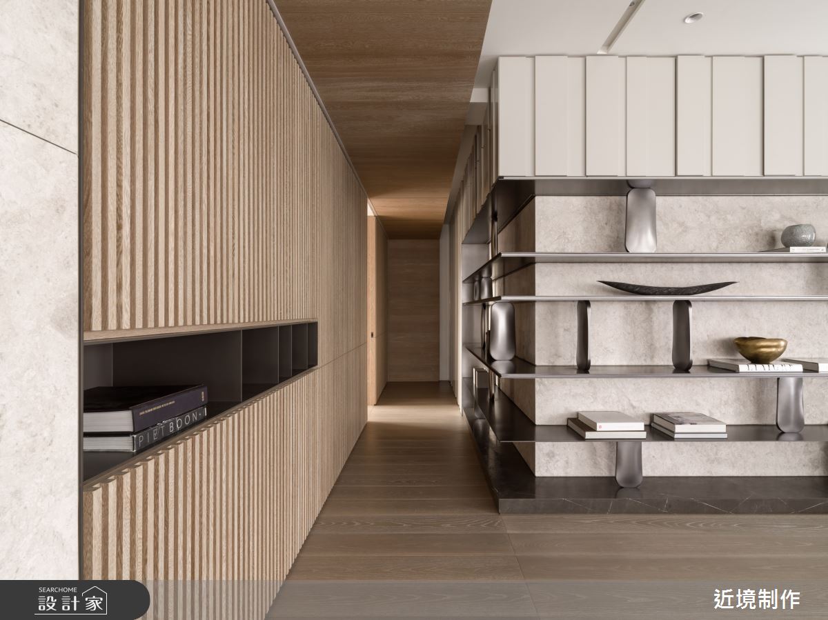 來自近境制作的84坪人文禪風住宅案,是一間新成屋(5年以下)的三房格局,設計師藉由建材以鍍鈦、石皮、木格柵、石材、層板的搭配應用,實現一家人的理想生活。