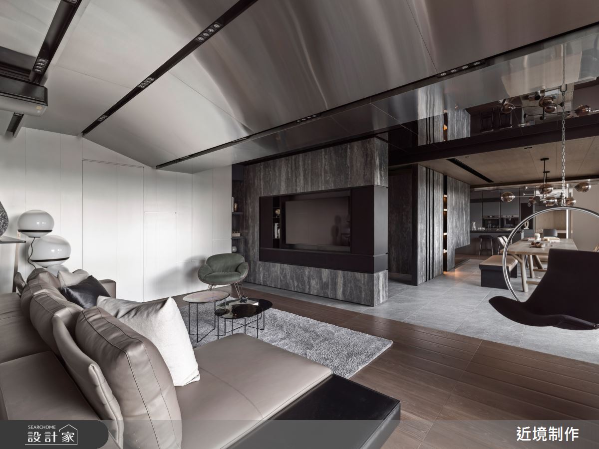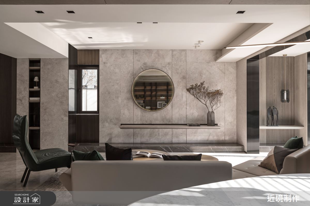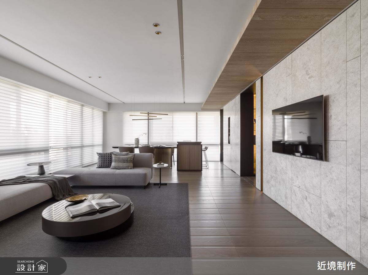 本案為近境制作的100坪現代風新成屋(5年以下)設計作品,格局為單層三房的居住空間。居住成員包含1位大人。全室建材的搭配,應用木地板、鍍鈦金屬、石材、木飾面、薄板、玻璃,展現溫馨的居家氛圍。