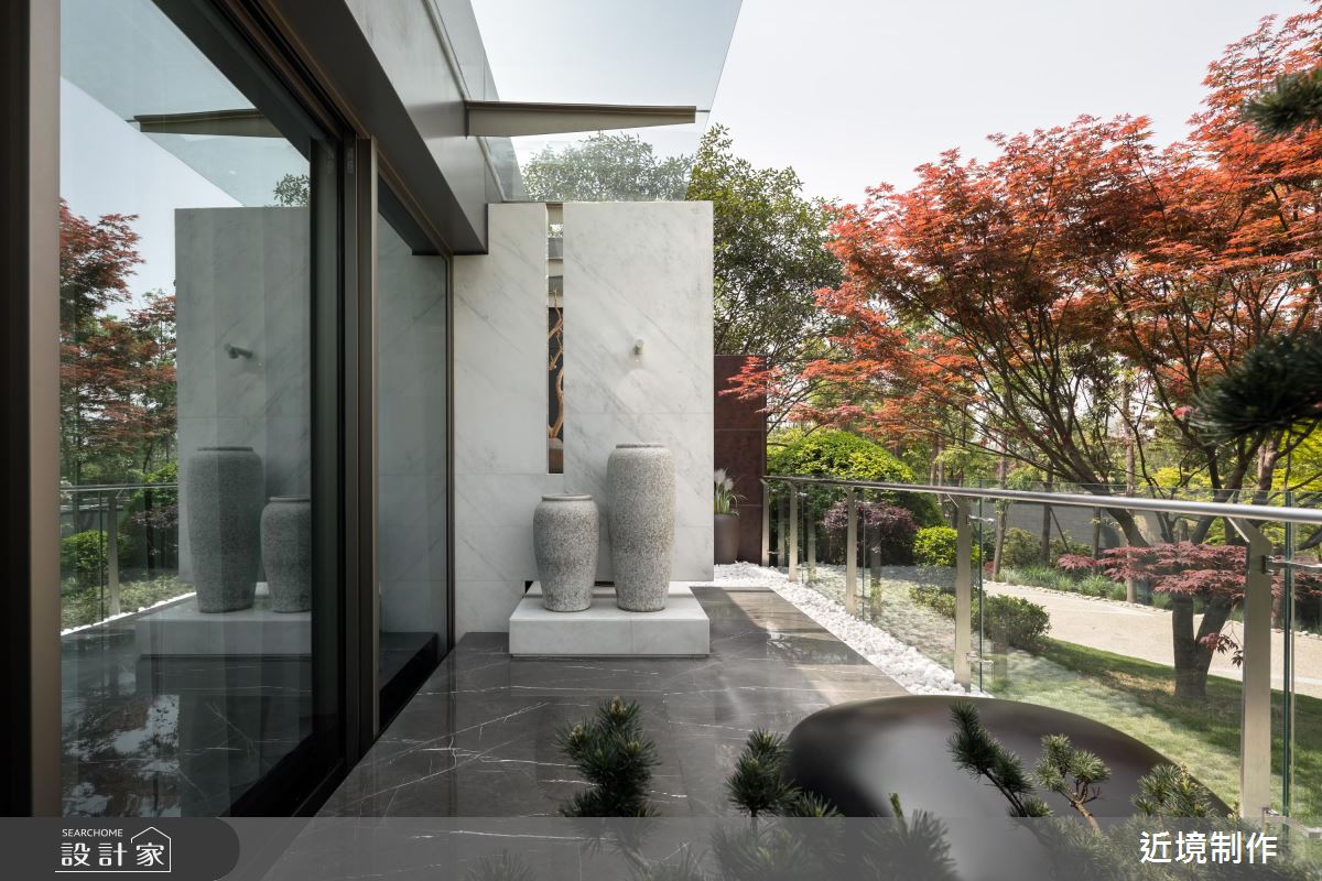 這間189坪的複層住宅有著同型住宅地下暗淡無光的問題,近境制作透過建築的挑高層分塊,增設夾層空間並向外向上發展,接受自然天光引入室內,並利用夾層作為轉換空間,帶入綠意。 自然光讓居住者對空間能有舒適感受,因此建築中利用兩處大面天井開窗,使陽光不經意的滲透屋內的各個角落,提供居住者豐盈的光線。而挑高的天井連結三處:一樓的戶外庭院、地下層的植栽提供品茗、沐浴時的感官享受,而夾層的閨蜜房則能同時觀賞到樹冠的綠意延伸。空間內各樓層㫮以開放平面處理,在空間滿足機能的同時也能滿足居住者對生活的想像,並以淺褐色為主色調,運用不同材質如石材、木料的堆疊展現豐富層次並讓室內外得以串聯。 小編的最愛 品茗區透過竹林、水景、天光洗滌心靈,並搭配茶磚牆的茶香氣,讓品茶過程中提升視覺、味覺、嗅覺、觸覺、聽覺達成豐富的五感體驗。