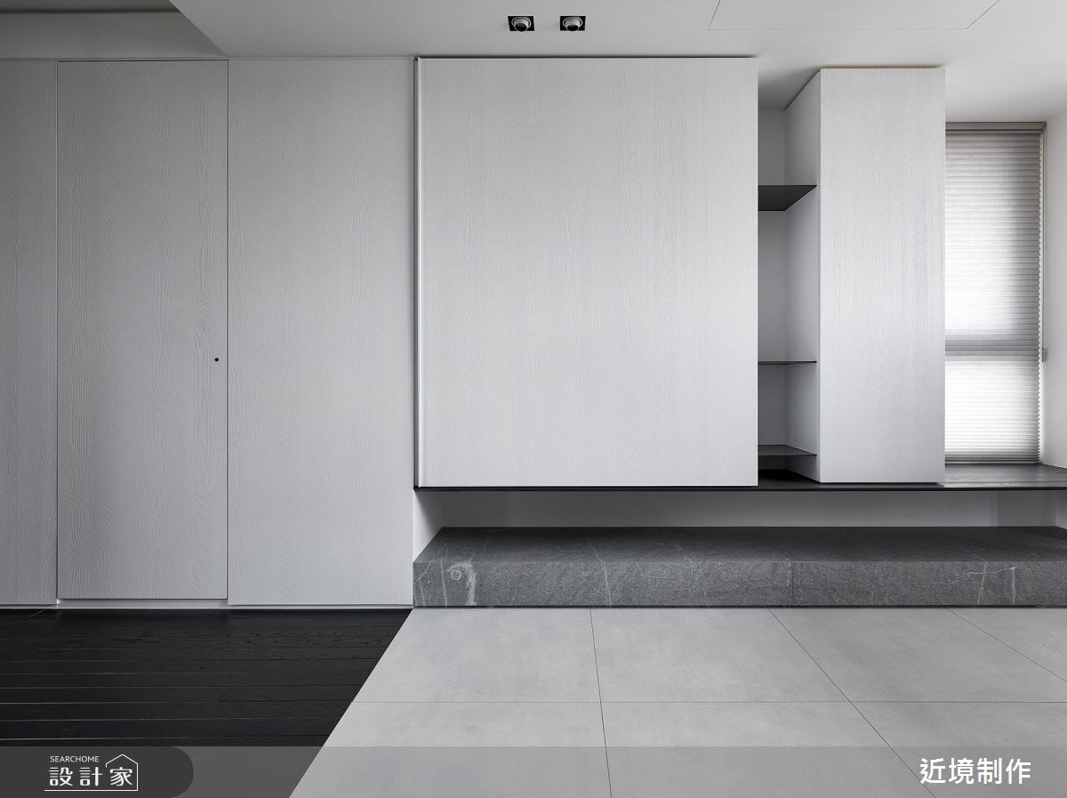 來自近境制作的56坪現代風住宅案,是一間新成屋(5年以下)的兩房格局,設計師藉由建材以竹炭乳膠漆、拉絲本色不鏽鋼、木皮、特殊石材、仿鈦漆的搭配應用,實現一家人的理想生活。