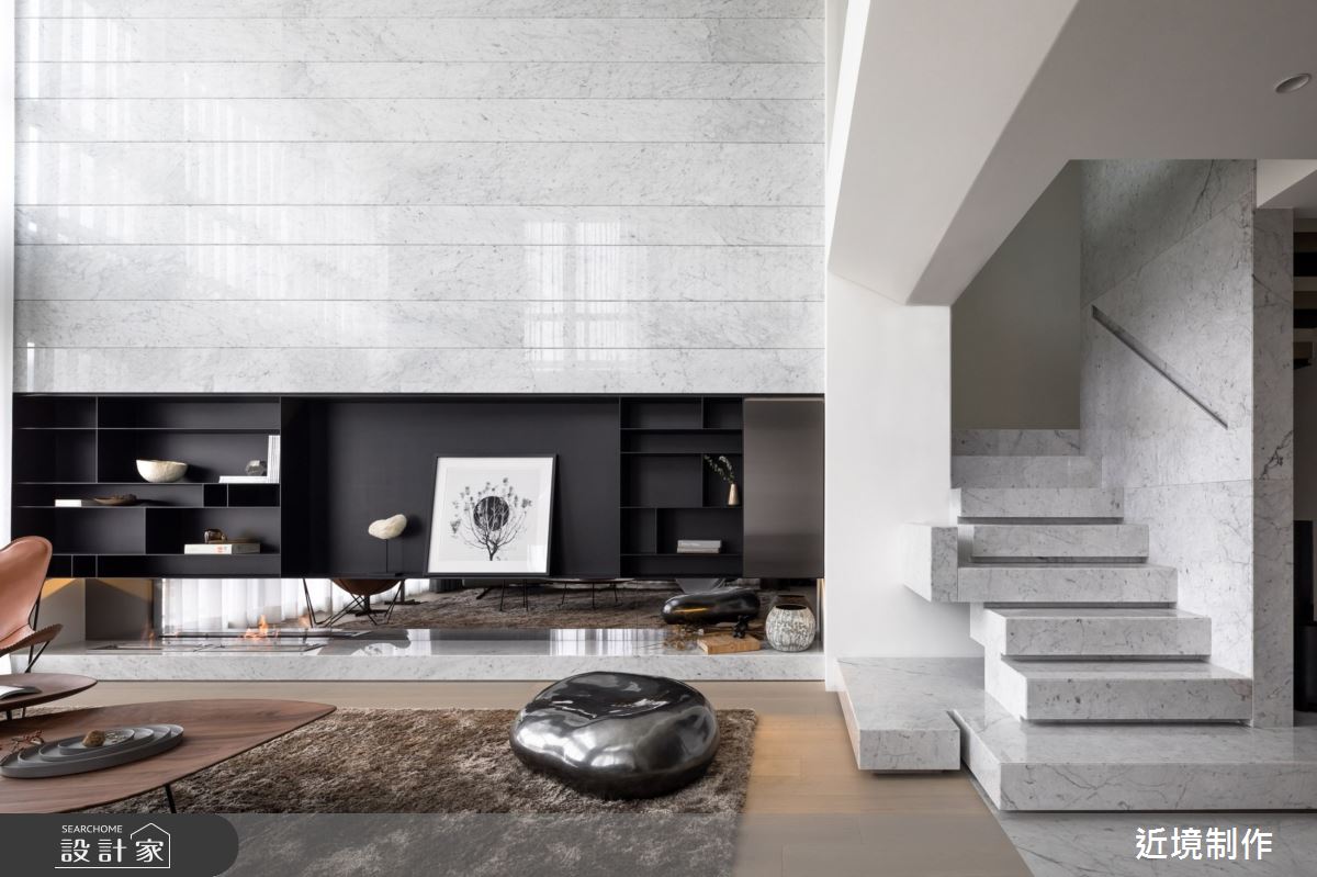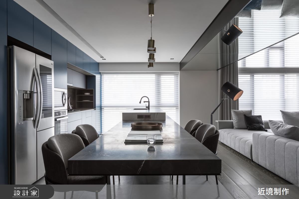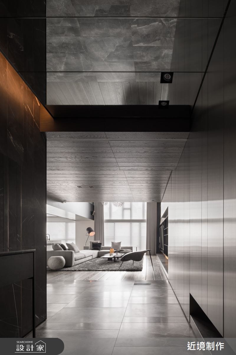 來自近境制作的95坪現代風住宅案,是一間新成屋(5年以下)的四房格局,設計師藉由建材以不鏽鋼、鐵件、木地板、長虹玻璃、石皮的搭配應用,實現一家人的理想生活。