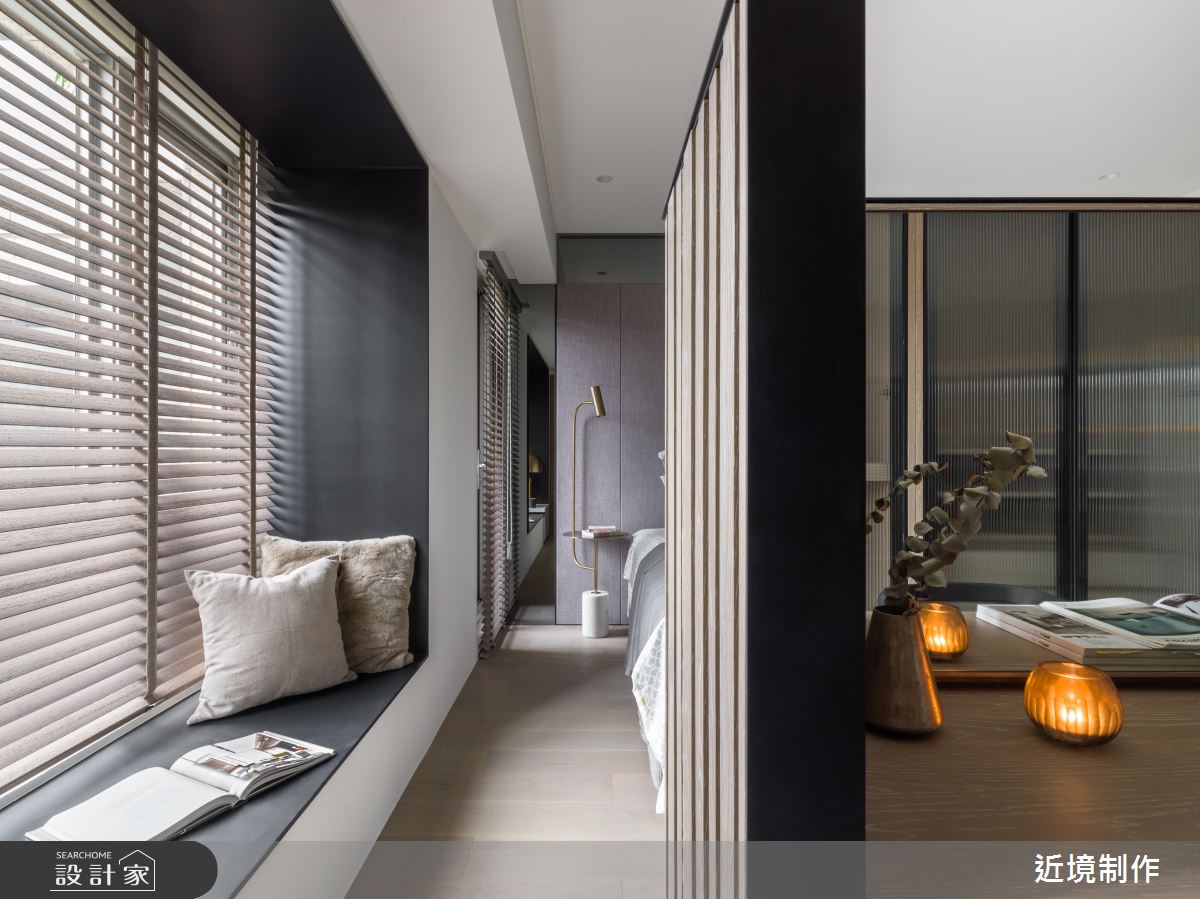 由近境制作精心規劃的43坪四房住宅空間。因應屋主需求,設計師運用現代風作為主軸,搭配木格柵、絲柔百葉、木作、木地板,打造全家人的夢想家居。