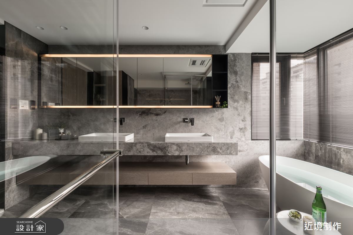 本案為近境制作的182坪現代風新成屋(5年以下)設計作品,格局為四房的居住空間。全室建材的搭配,應用特殊漆、鐵件、木格柵、水磨石、木地板,展現溫馨的居家氛圍。
