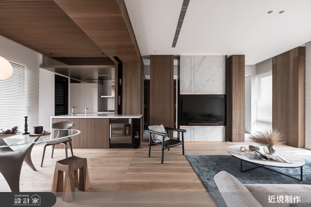 本案為近境制作的67坪現代風新成屋(5年以下)設計作品,格局為四房的居住空間。全室建材的搭配,應用木作、大理石、木地板,展現溫馨的居家氛圍。
