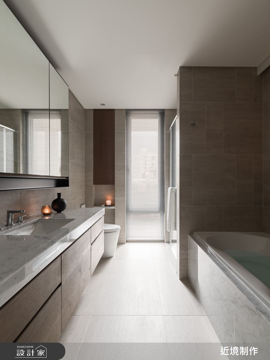 由近境制作精心規劃的140坪四房住宅空間。因應屋主需求,設計師運用現代風作為主軸,搭配乳膠漆、海島型木地板、石材,打造全家人的夢想家居。