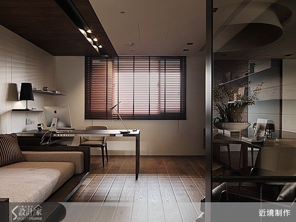 本案位於新竹市東區,45坪三房兩廳的現代風設計。透亮的空間為場域注入滿滿的暖感,以光潤室產生無限的光影對話;以地坪媒材的不同劃分出客廳、餐廳與書房三個空間,依居住需求調整為最佳的動線;電視主牆不做大結構的設計,不僅在視覺上產生寬闊感,一體兩用的設計也讓書房空間增加了收納機能,書房空間運用強烈的黑與白色系打造的書櫃,色塊不規則的錯落,交織出現代的摩登風情;餐區的實木餐桌呈現溫潤質感,讓全家在此樂懷的享受美食饗宴;起居空間也表現出舒適療癒的語彙,大地色系將空間揮灑的格外協調;整體空間運用媒材與色塊的交疊,層層交織出極佳的現代住宅語彙。主要建材:鐵件、洞石、橡木地板。