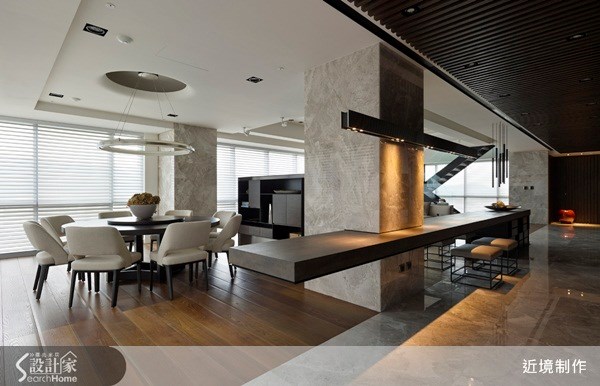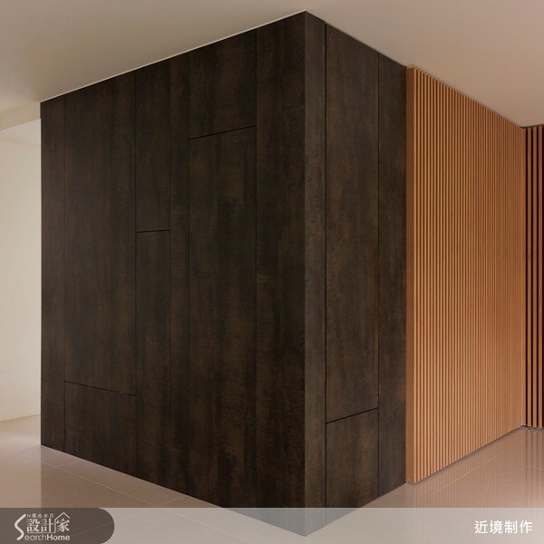 世界級建築師Frank Lloyd Wright曾說過:「重要的是,我們要和自然一起運作」。這提醒了我們,回家,是展開另一趟自然之旅的開始。在新竹市北區的本案,設計師強調家是心境洗滌的最佳場所,也透過「引景入室」平衡居住者與大自然之間的和諧關係,讓風景停佇,讓心靈新生。在四房二廳寬敞的90坪空間中,處處構思家人獨立又自在的空間;玄關停佇的獨立,是為了讓戶外風景與玄關區域的視線保持一段距離,繞過牆面,迎來滿室的綠意和家的風景。並由窗外的樹蔭獲得靈感,選用支幹紋路的石材,開創室內不同的色階層次,讓大尺度的客廳擁有寬頤自然的靈魂,並以兩道垂直主牆導入流動的室外光,既劃分公共空間,也保留寬敞動線。更向窗外借景,創造如戶外庭園用餐的綠意氣氛。主要建材:石材、鐵件、木皮。