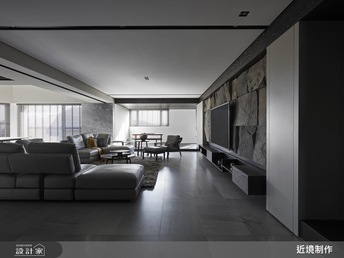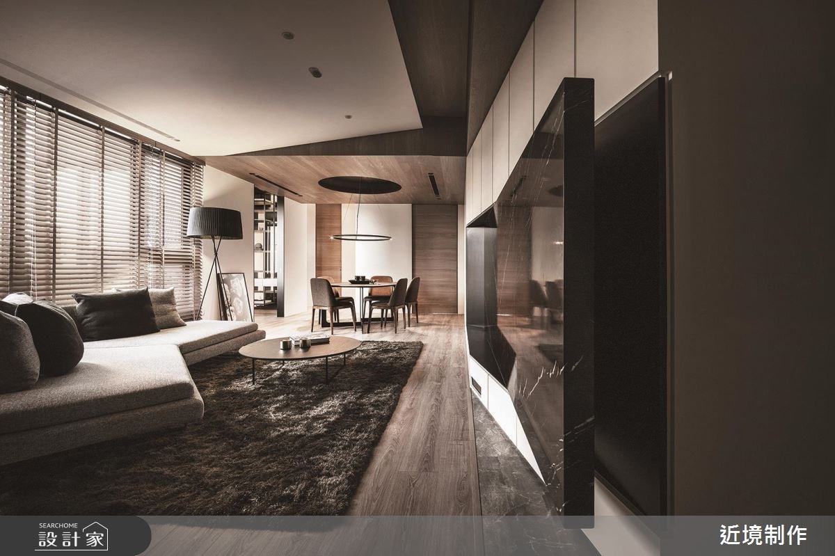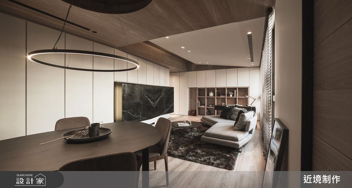 33坪的現代風居家,近境設計以「日‧晷」為名,靈感源於古老的觀日儀器,將概念運用於空間設計上,刻意地翻轉空間與空間的平行原理,並猶如日晷般讓量體產生夾角,型構出充滿想像力的生活視角,快跟著小編一起來看看吧! 在平面配置上,設計師將空間切割再重新整合,並讓不同空間並存,不僅掌握各年齡層需求,提高既有的場域靈活性,也在場域的交叉規劃中,更強化人與人之間的交集與互動;空間使用上,則跳脫框架,做出友善全齡化設計,配置夫妻共用書房、孩童用小孩房、照護用傭人房等,並讓每個空間的可利用性更彈性多元;立面造型設計上,突破了既往常見的平面與立面的各自獨立,刻意將面與面之間產生連結性,結合切割、延伸、立體三大元素,突破以往單一立面的表現概念,透過面與面的連動,讓空間產生獨有的動態感官,強化了面之間的連貫性。 小編的最愛 設計,起於平面,始於立面,終於天花;電視牆設計的起始發想,為用平面解構量體堆疊的概念,創造不同層次的立面設計,再藉由電視牆造型轉換消點視角,延伸至天花架構,成就空間中的天、地、壁、門、櫃,也完整室內建築的語彙。
