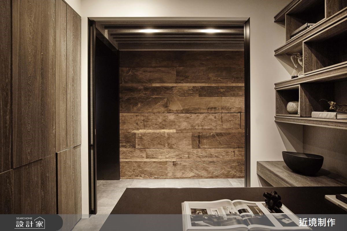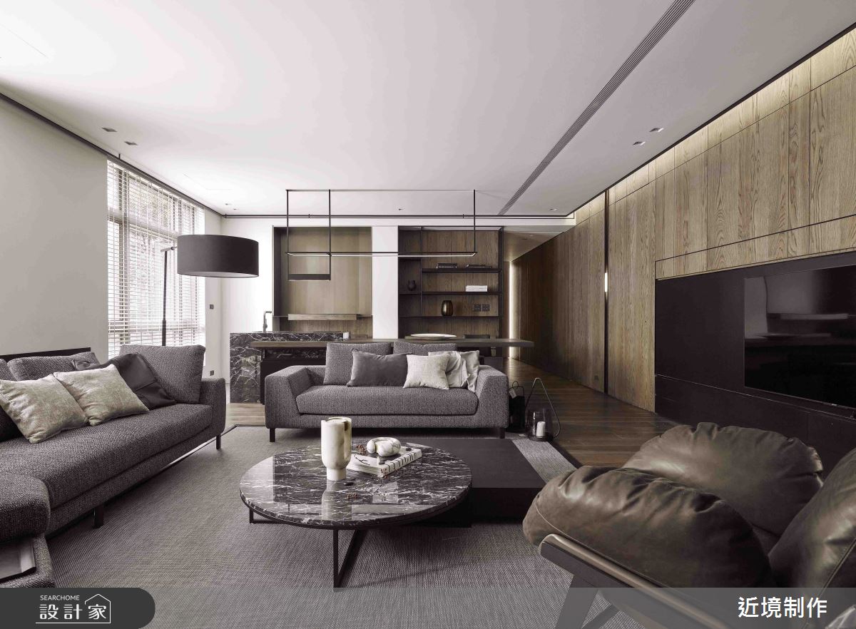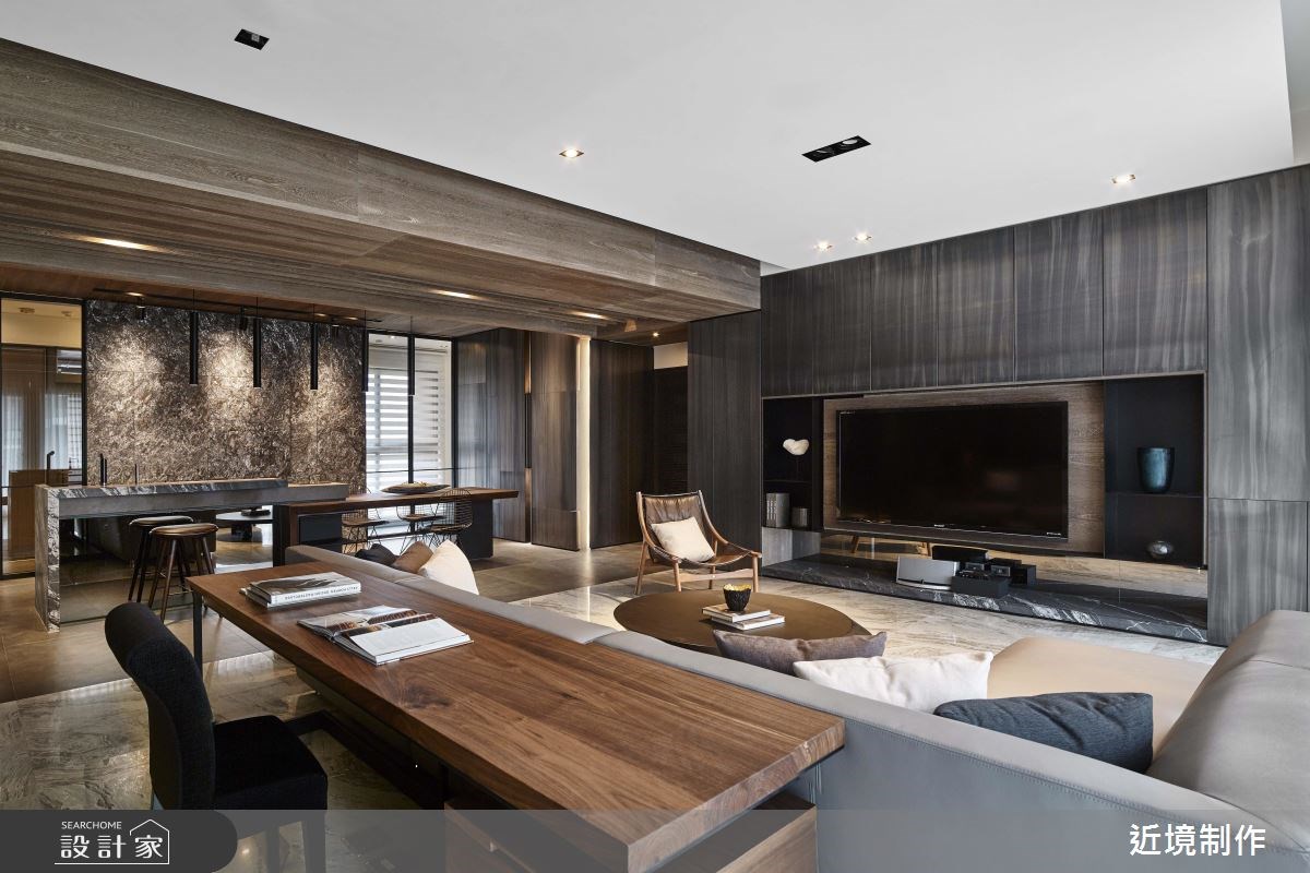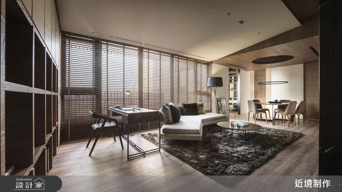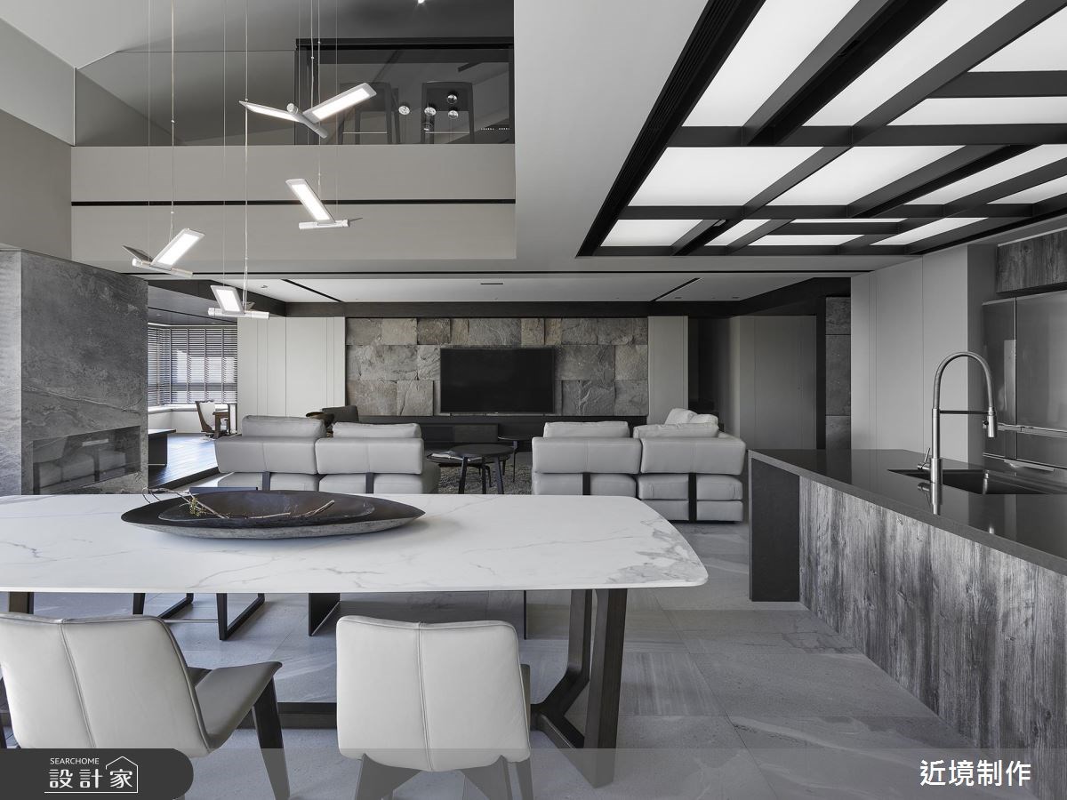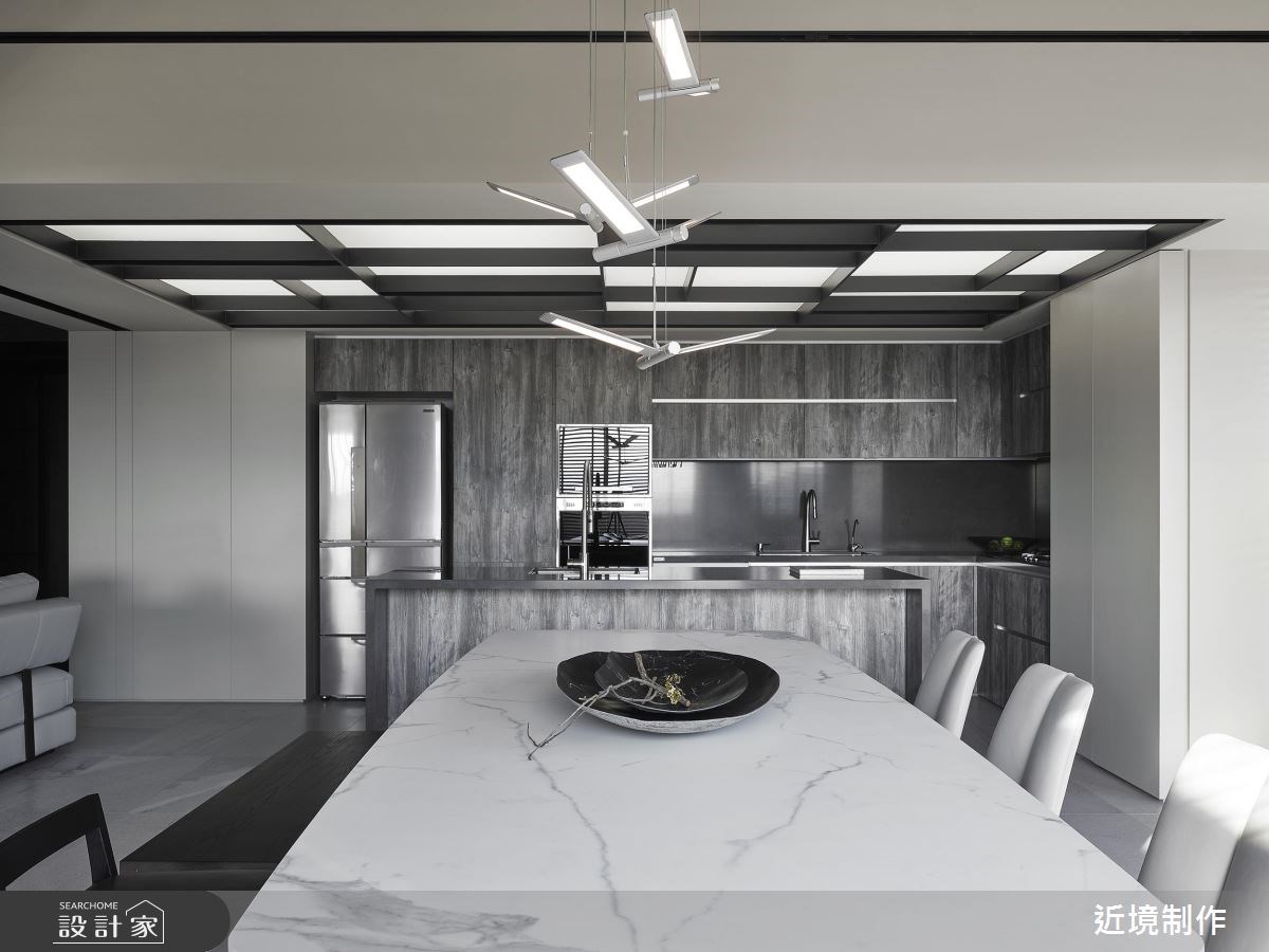 立體的空間中,人們的視角是由許多連續的平面建構起的畫面,而透過生活行為,才能更近一步感受到設計美學更深一層的語彙。在67坪的空間中,以鋼刷木皮與銅刷橡木作為空間基調,藉由鋪設面積的安排以及手染色澤的變化,堆砌出空間層次。在木皮溫潤平順的質感下,設計師以黑鐵組織燈飾與家具,讓空間像是繪畫的勾勒手法,刻畫出設計的細膩度,凸顯立體感以及線性張力。 場域的配置上,將傳統神明廳的造型轉化,調配深度與寬度的比例,安置於中島後方,讓突兀的神明桌自然的與空間融為一體。美學包覆機能的設計概念,在空間中的幾何吊燈、壁面燈飾以及收納、浴鏡等等細節表露無遺;跳脫擺放位置的限制,以場域相連的思維創造新的空間關係,讓每個家具、材質的關聯性更緊密,卻又能凸顯每一個平面的視覺美感。 小編的最愛 沈穩的木質調餐廚中島,將大理石與原木兩種不同特質的材質完美銜接在一起,雖然色系與材料十分精簡,卻藉由線段詮釋出豐富的空間表情。銅刷木皮的紋理深刻而耐人尋味;家具的比例恰如其分地安置於空間內,浮動的線,帶給人的卻是無比平靜的體驗。